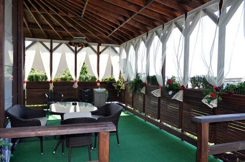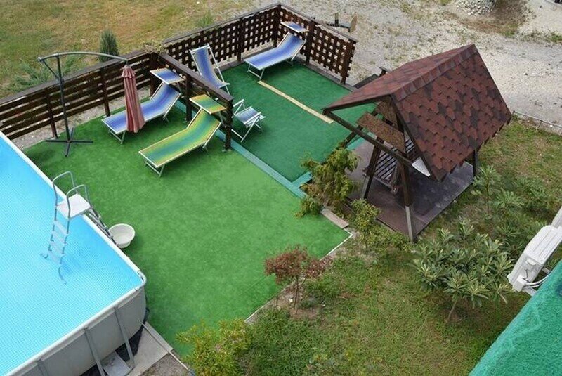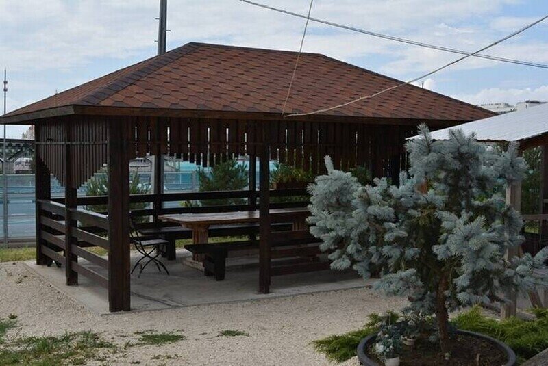 На территории есть открытый бассейн, уютные беседки с зоной барбекю и мангалом, терраса для загара и собственная парковка.