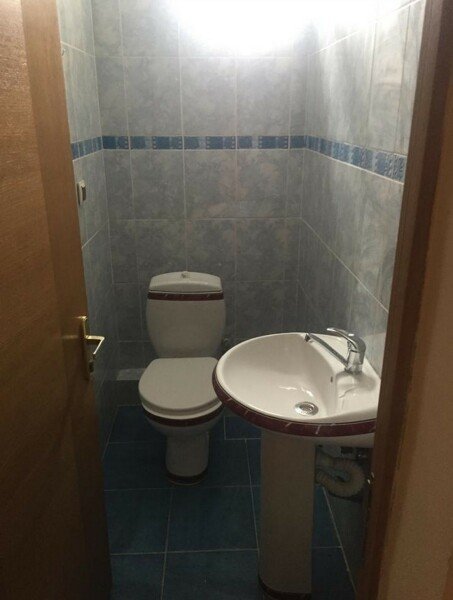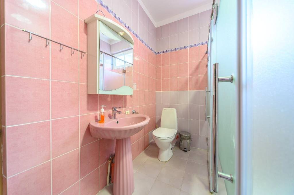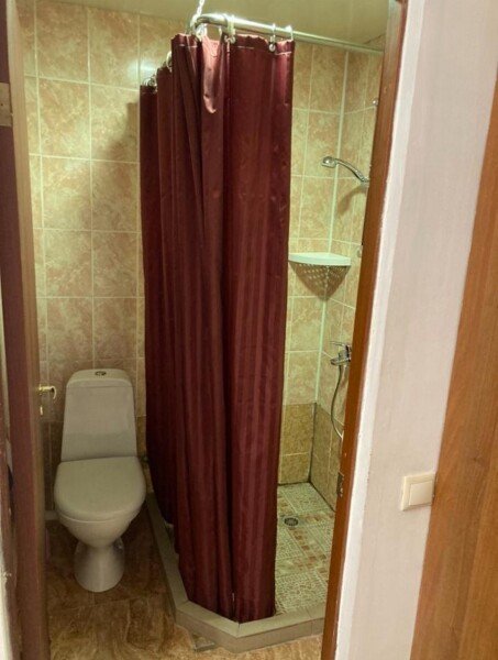 Индивидуальная ванная комната: душ, раковина, туалет.