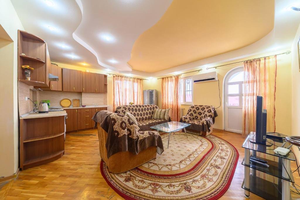 Имеется телевизор, кондиционер, отопление, шкаф, вешалка, журнальный столик, кухня, посуда, столовые приборы, СВЧ, чайник, холодильник, газовая плита, стулья, фен.