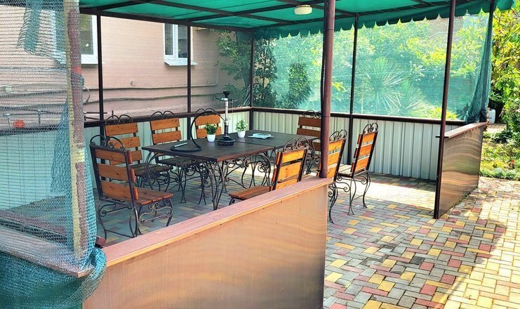 Семейный отдыхДостоинстваГостевой дом полностью соответствовал нашим ожиданиям. Симпатичный номер, мангальная зона, столики на улице. Территория очень приятная. Ну и конечно самое большое преимущество: море в двух минутах ходьбы.