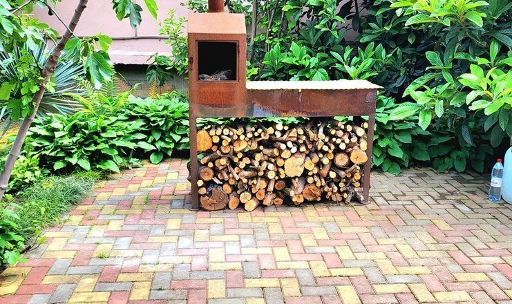 На благоустроенной территории с красивым садом есть несколько уютных беседок с обеденной зоной, общая кухня и специальная мангальная зона с принадлежностями для барбекю.