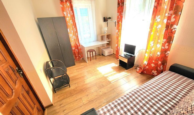 Трёхместный номер площадью 18 кв.м с видом во двор. Подходит для размещения 3 человек Имеет спальню с приятным интерьером.