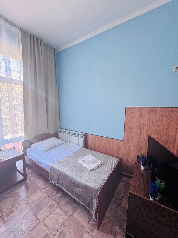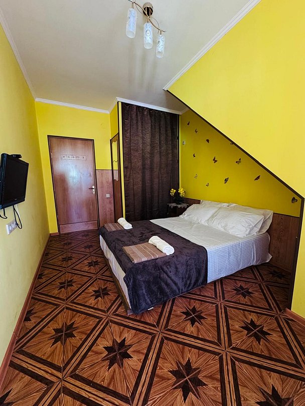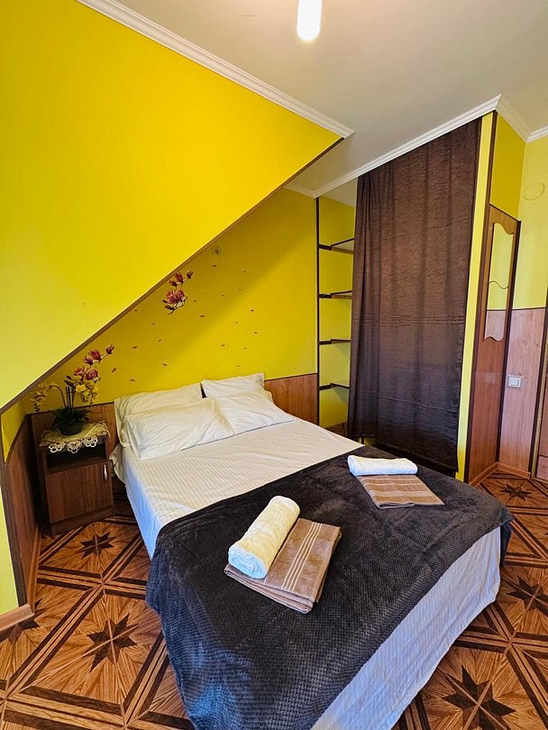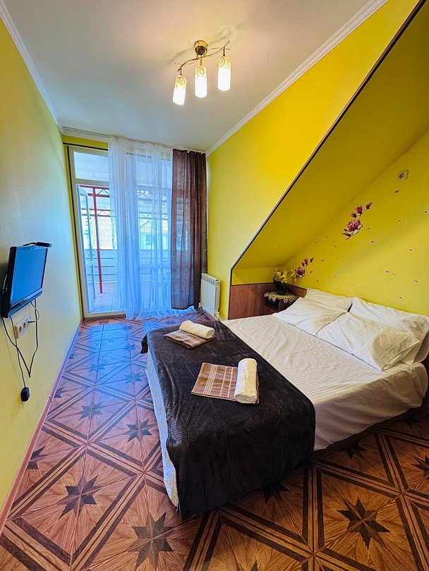 2-х местные номера категории «Эконом» - однокомнатные уютные номера, расположенные на 3 этаже гостевого дома, в каждом номере – 2-х спальная кровать, полки для одежды, прикроватные тумбочки, телевизор, кондиционер. Санузел (душ, туалет, умывальник) и холодильник на 4 номера в общем коридоре. Возможно дополнительное место – еврораскладушка. В одном из номеров есть балкон.В номере
