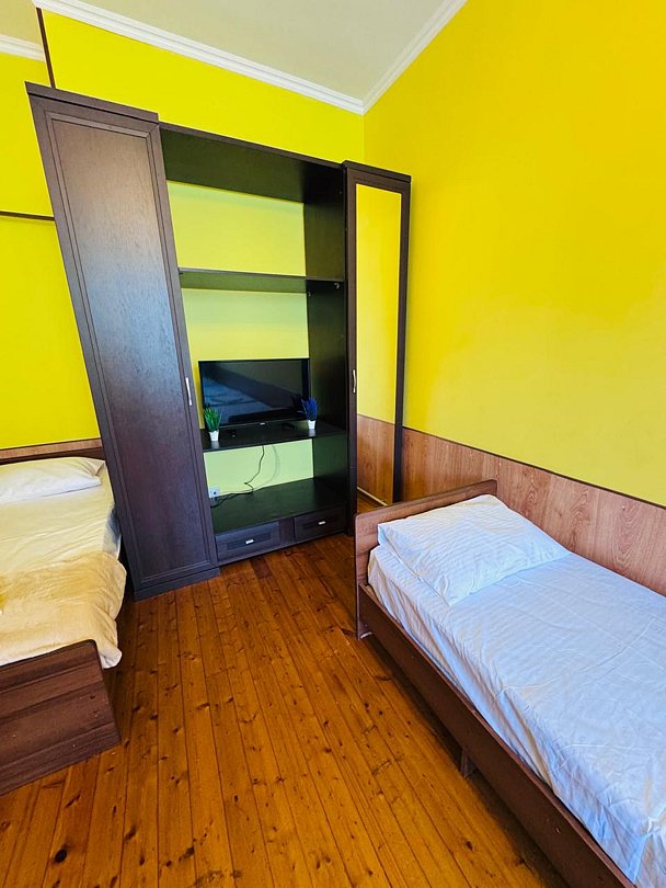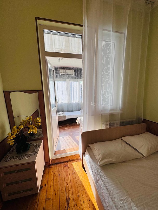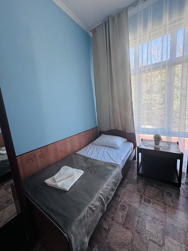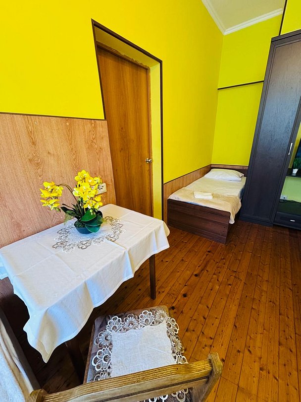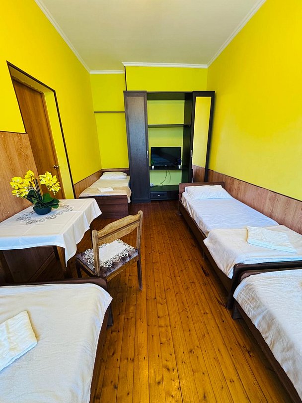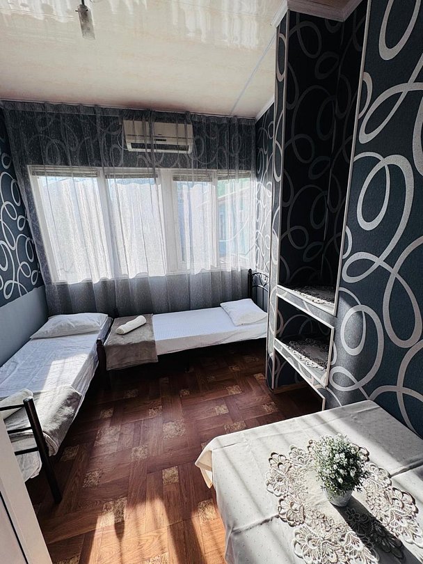 4-х местные номера категории «Эконом» - однокомнатные уютные номера, расположенные на 2 этаже гостевого дома, в каждом номере – 4 раздельные односпальные кровати, полки для одежды, прикроватные тумбочки, телевизор, кондиционер, обеденный стол, стулья. Санузел (душ, туалет, умывальник) и холодильник на 2 номера в общем коридоре.В номере
