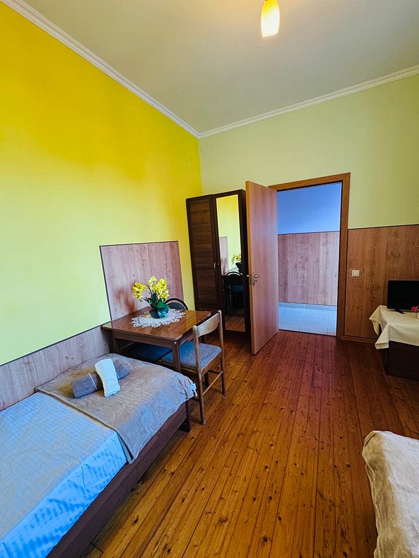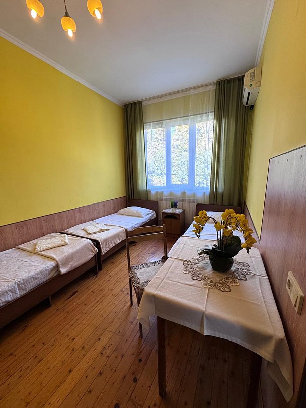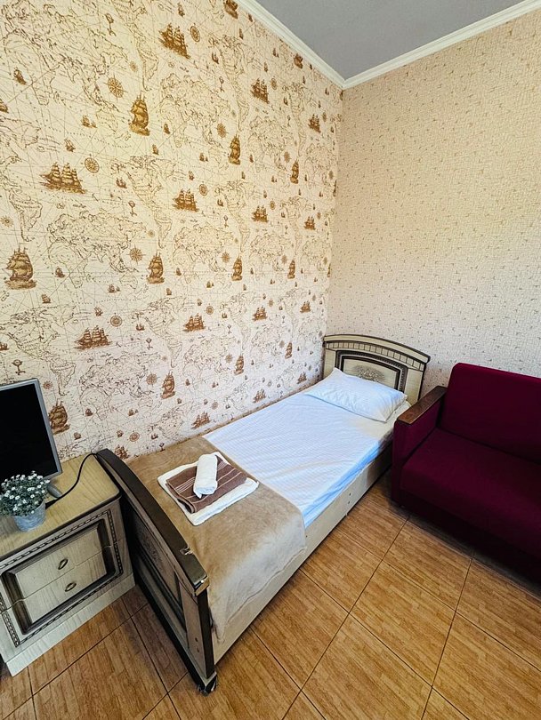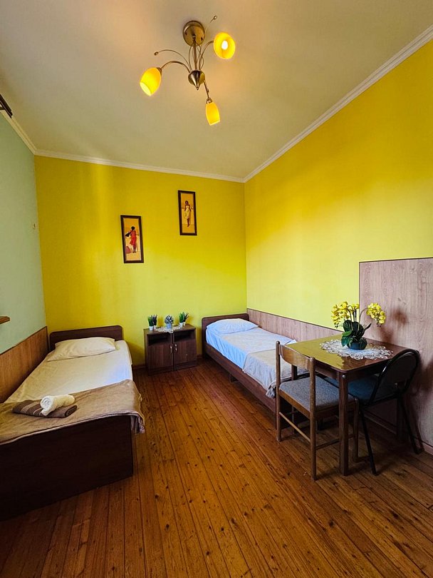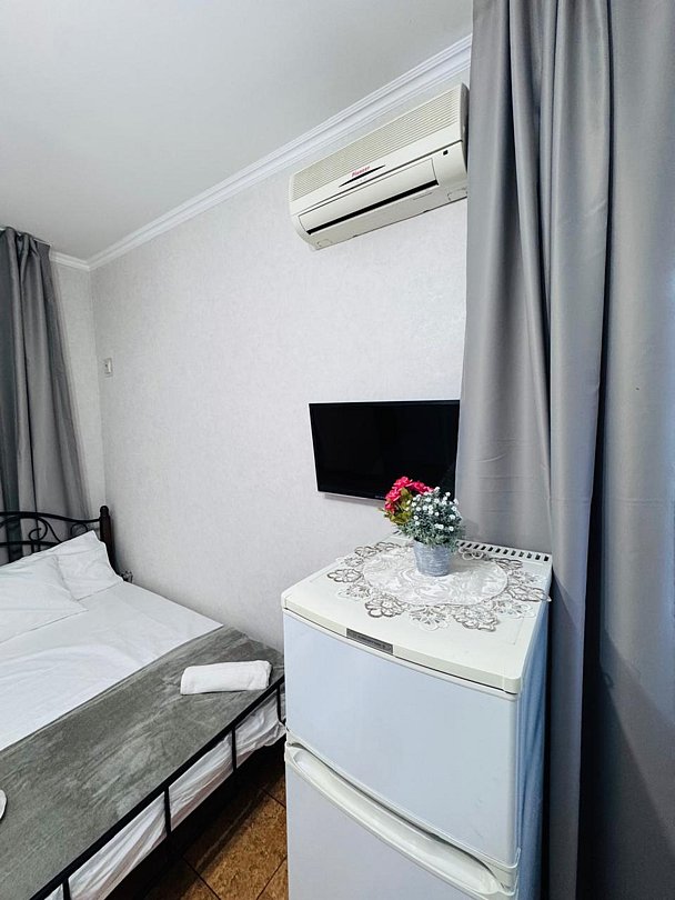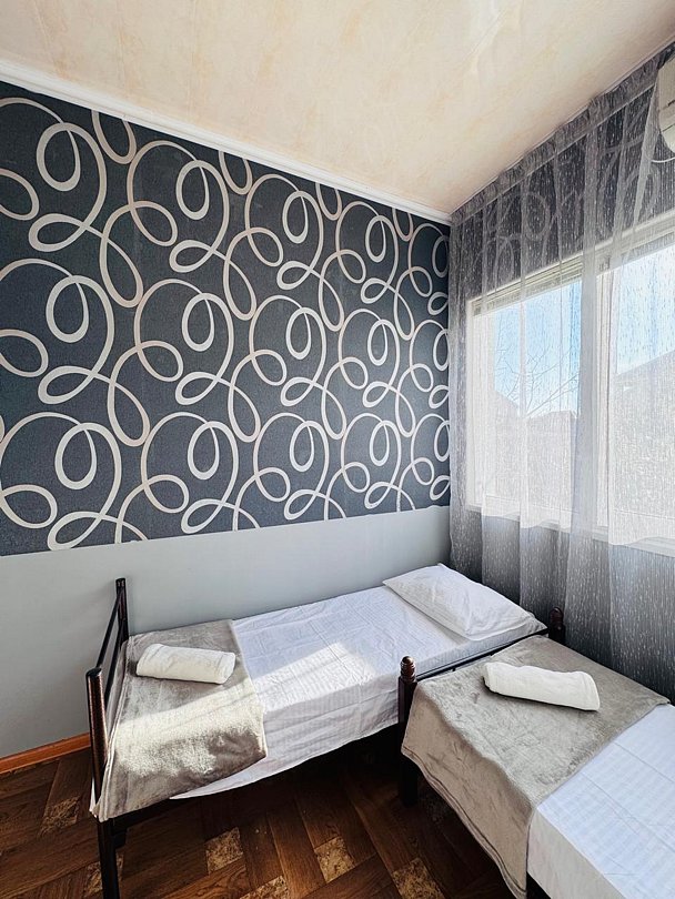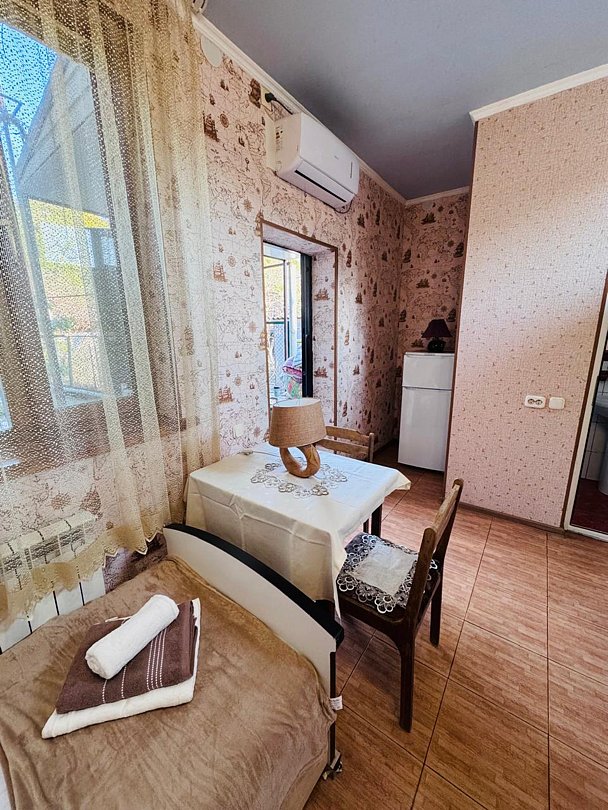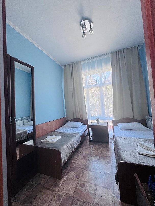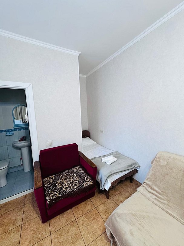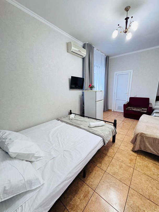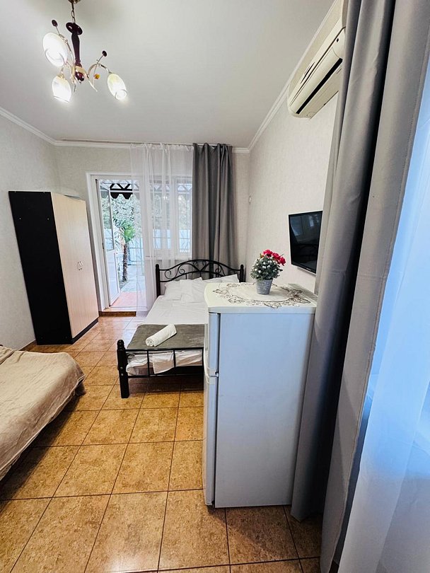 3-х местные номера категории «Стандарт» - однокомнатные уютные номера, расположенные на 1 этаже гостевого дома, в каждом номере – 2 раздельные односпальные кровати и кресло-кровать, шкаф для одежды, прикроватные тумбочки, телевизор, кондиционер, обеденный стол, стулья, санузел (душ, туалет, умывальник), холодильник.В номере