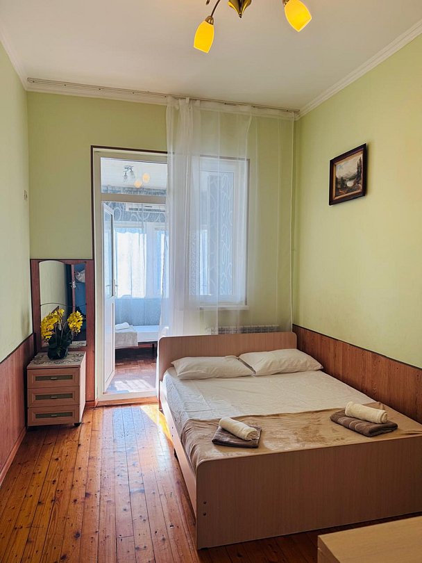 4-х местные 2-х комнатный номер категории «Стандарт» - двухкомнатные уютные номера, расположенные на 1 этаже гостевого дома, в одной комнате – 2-х спальная кровать, полки для одежды, стол, кондиционер, в другой комнате – 2-х спальная кровать, прикроватная тумбочка, шкаф для одежды, комод, санузел (душ, туалет, умывальник) и холодильник.В номере