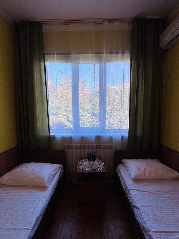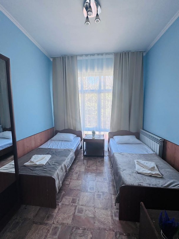 2-х местные номера категории «Эконом» - однокомнатные уютные номера, расположенные на 2 этаже гостевого дома, в каждом номере – две односпальные кровати, полки для одежды, прикроватные тумбочки, телевизор, кондиционер. Санузел (душ, туалет, умывальник) и холодильник на 2 номера в общем коридоре. Возможно дополнительное место – еврораскладушка.В номере