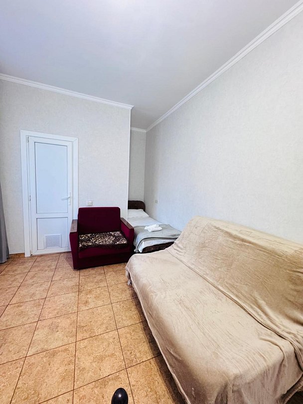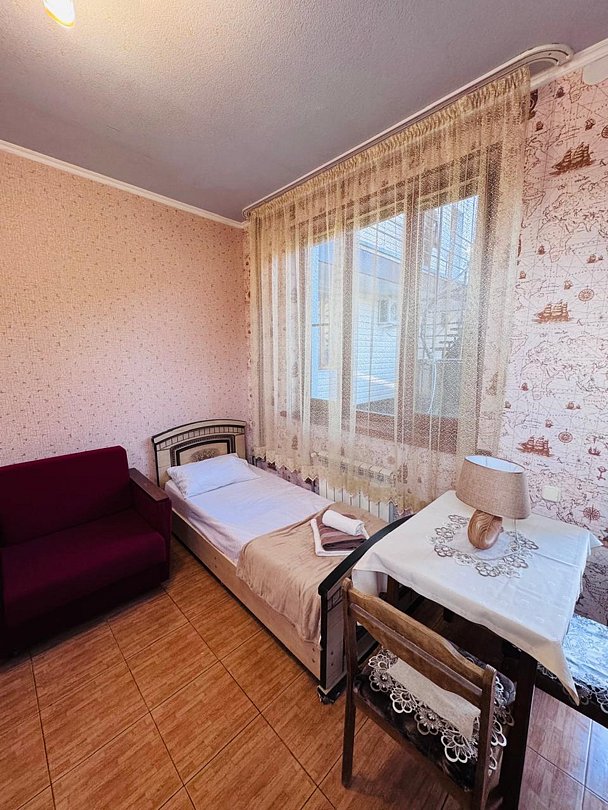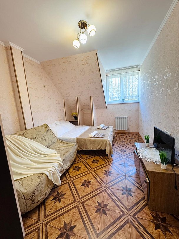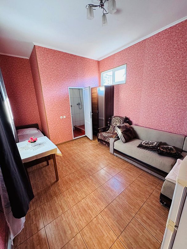 4-х местные номер категории «Стандарт» с раздельными кроватями- однокомнатные уютные номера, расположенные на 2 этаже гостевого дома, в номере – 2-х спальный диван, 1-но спальная кровать, кресло-кровать, шкаф для одежды, прикроватная тумбочка, обеденный стол, кондиционер, телевизор, санузел (душ, туалет, умывальник), холодильник.В номере