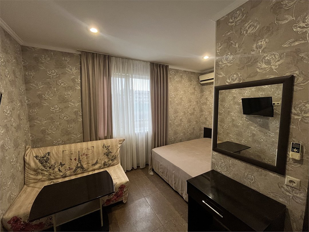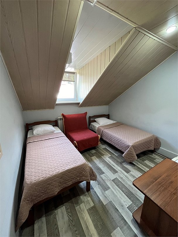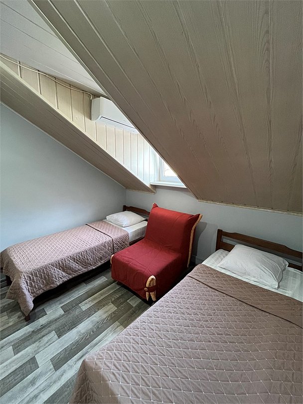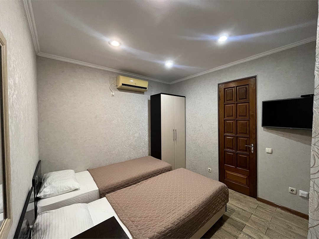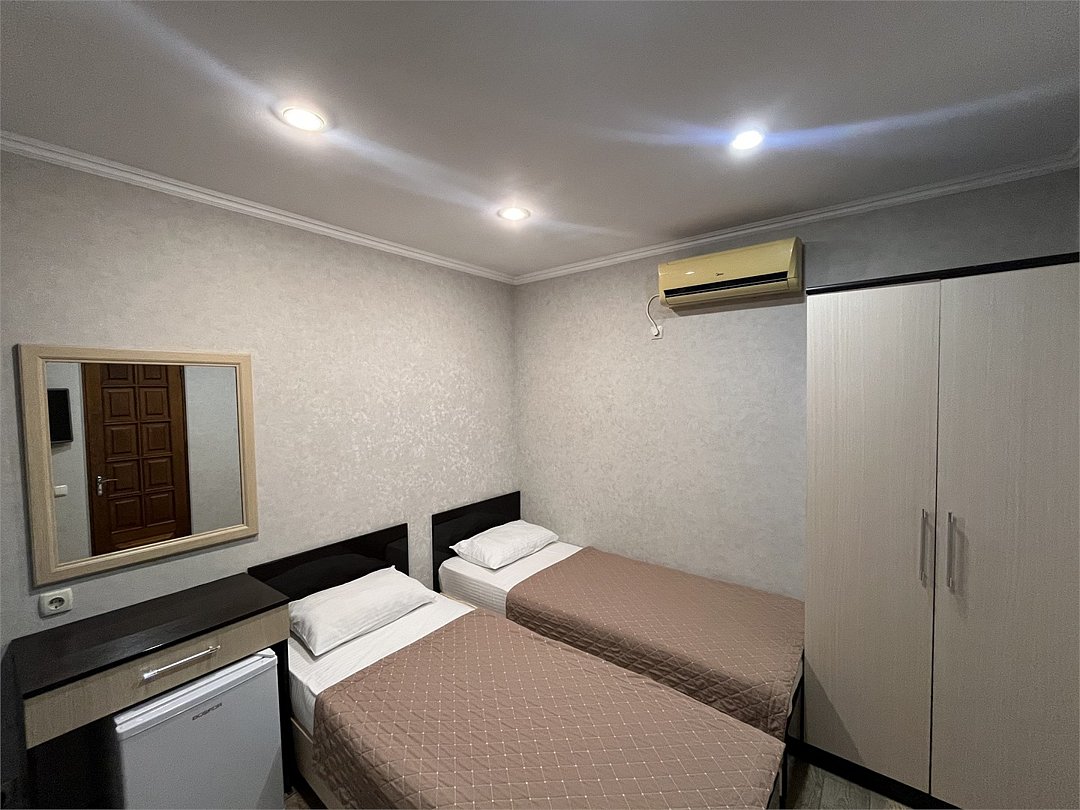 В номере две односпальные кровати и диван-кровать 1.40, душ туалет в комнате, в номере телевизор, холодильник, кондиционер, Общая кухня, мангал, стиральная машинка. Бесплатный WiFiУслуги и удобства