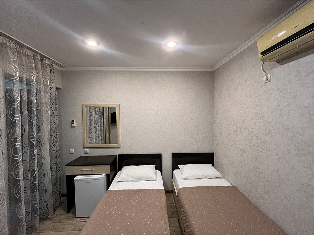 Эконом номер, двуспальная кровать и односпальная кровать или 3 односпальные кровати, в комнате кондиционер телевизор, холодильник, душ, туалет общий на 5 комнат, 2 душа и 2 туалетаУслуги и удобства