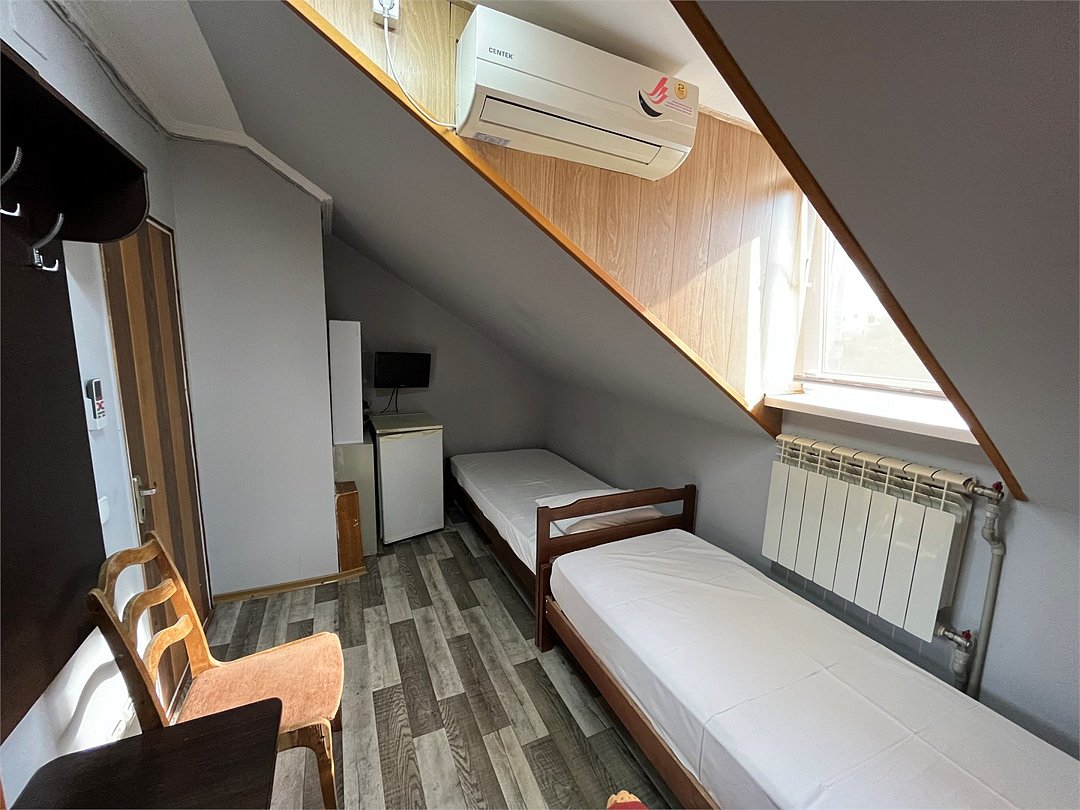 Эконом номер, две односпальные кровати и раскладное кресло, в комнате кондиционер телевизор, холодильник, душ, туалет общий на 5 комнат, 2 душа и 2 туалетаУслуги и удобства
