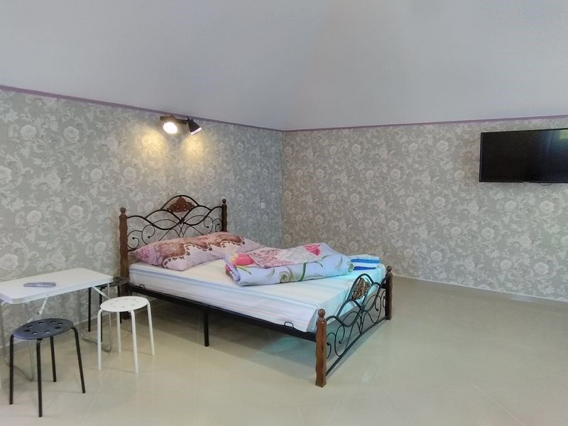 телевизор, Wi-Fi, интернет, кондиционер, двуспальная кровать, стулья, вешалки, журнальный столик, общая ванная комната, частичный вид на мореВ гостиничном номере