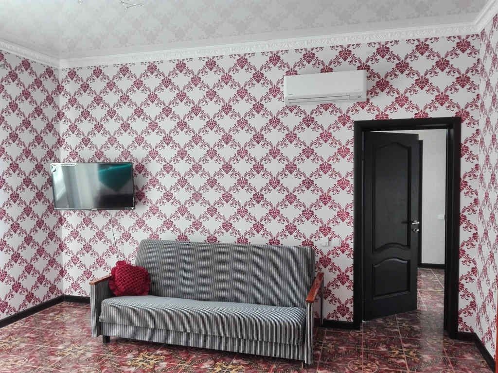 телевизор, Wi-Fi, интернет, холодильник, кондиционер, микроволновая печь, ванная комната, двуспальная кровать, диван, стулья, вешалки, журнальный столик, кухонная утварь, кухонный уголокВ гостиничном номере