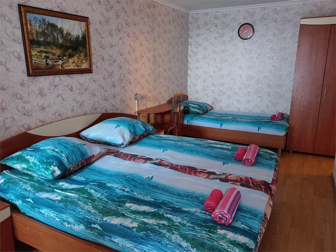 Трехместный с одной двуспальной кроватью кинг-сайз (190см) и одной односпальной с холодильником и балкономУслуги и удобства