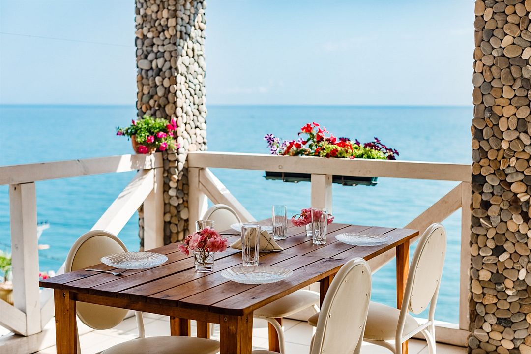 телевизор, Wi-Fi, интернет, кондиционер, ванная комната, санузел, водонагреватель, банные полотенца, пляжные полотенца, балкон, балкон с красивым видом, двуспальная кровать, стулья, вешалки, журнальный столик, зеркало, унитаз, раковина, питьевая вода, отдельный вход в номер, душ, вид на море, стаканы, туалетные средства, туалет, цифровое тв, телевизор с плоским экраном, москитная сетка, онлайн-регистрация до заезда, можно с питомцамиВ гостиничном номере