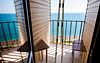 Двухместный номер с балконом (вид на море) и одной двуспальной кроватью. Кондиционер, душ, туалет, вентилятор, фен, телевизор,Услуги и удобства