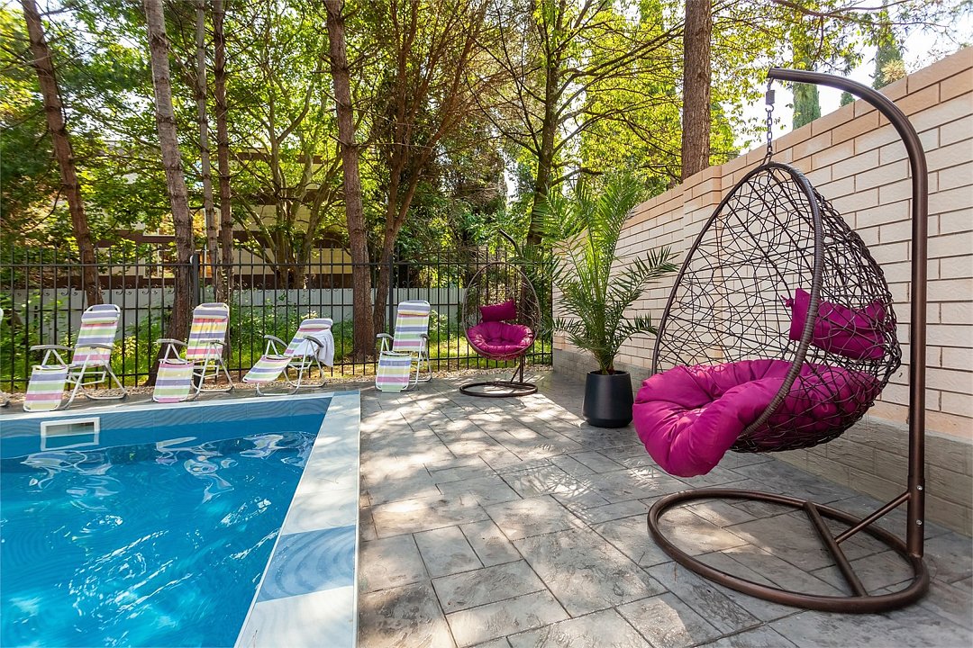 Тип бассейна: открытый бассейнВода в бассейне: подогреваемый бассейнРазмеры: 7.7 x 7.5 мГлубина: 170 смПериод работы: круглогодичноРежим работы бассейна: