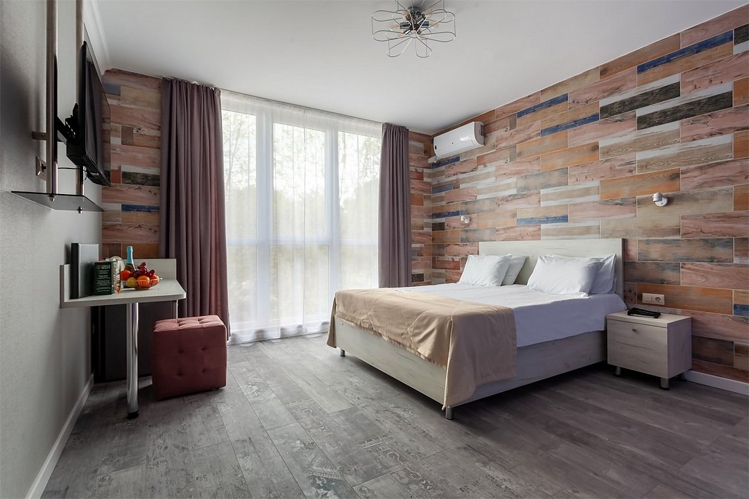 Стандартный номер с одной кроватью. Без балкона, но с панорамными окнами. В Номере есть все для комфортного проживания: кровать, кресло, шкаф-купе, тумба, зеркало, телевизор, холодильник, WI-FI. * Проживание детей до 4 лет бесплатно. Халаты в данной категории предоставляются за отдельную плату в размере 500 руб. на весь срок проживания.Услуги и удобства