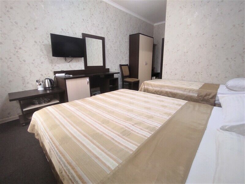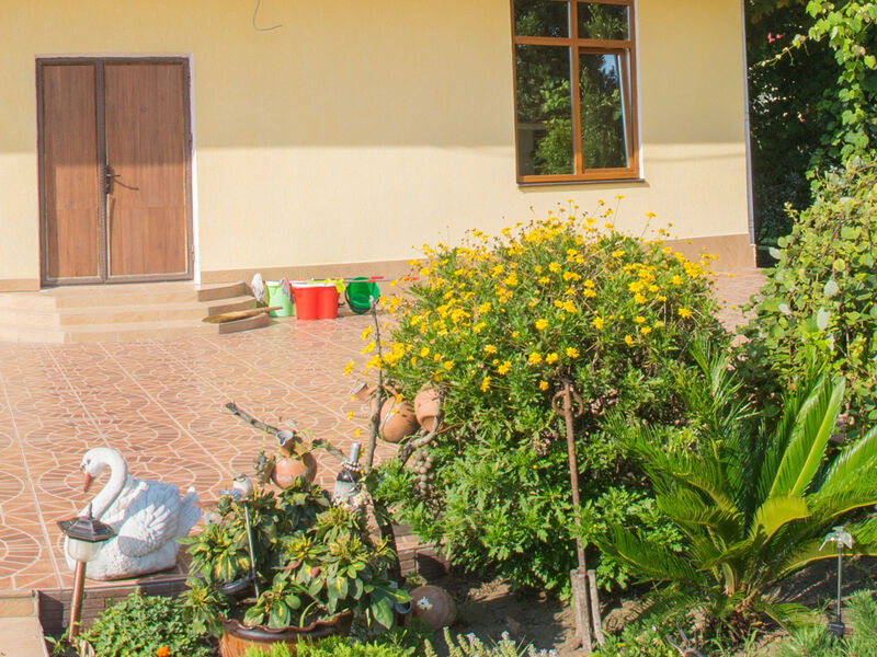 Гостиница возведена в 2013 году. На обустроенной территории много субтропической зелени, дарящей комфортную прохладу в жаркие дни. Яркое южное солнце не мешает отдыхать в затененных беседках и готовить шашлык на мангале во дворе.