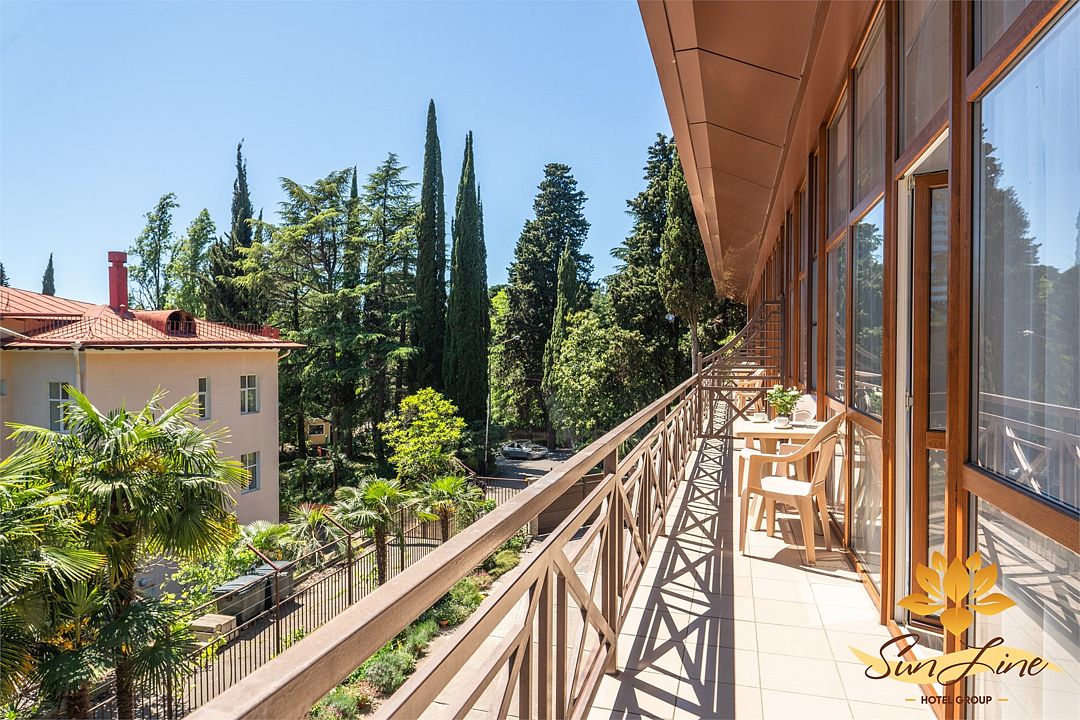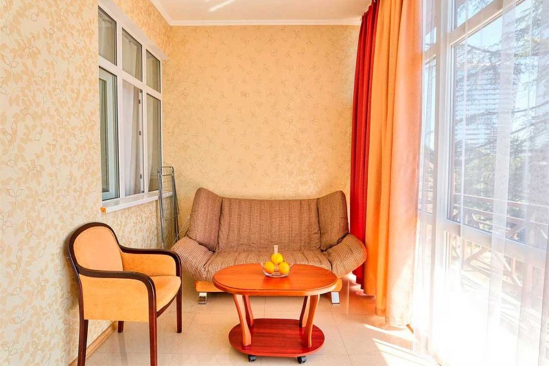 Просторные номера категории Комфорт с видом на море расположены на 4 этаже отеля. Лоджия с прекрасным видом на море и с местом для отдыха.
