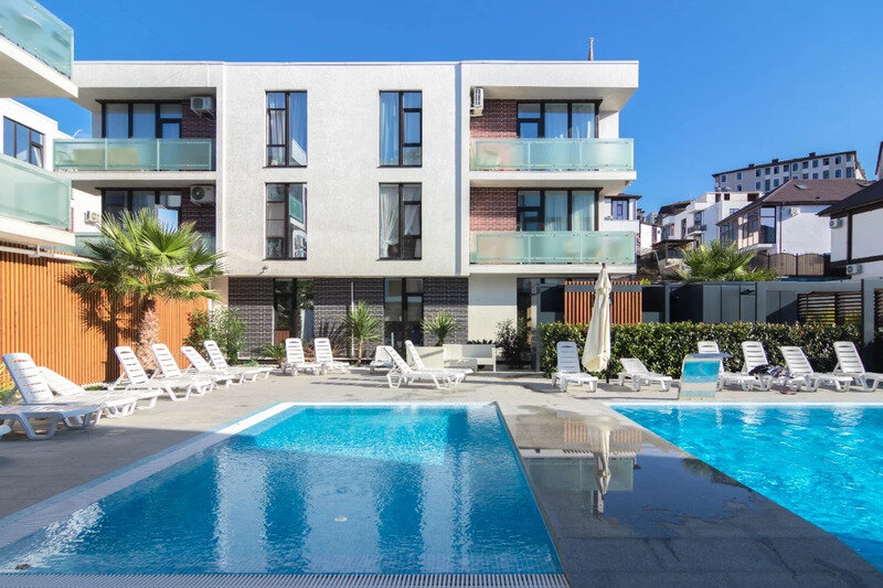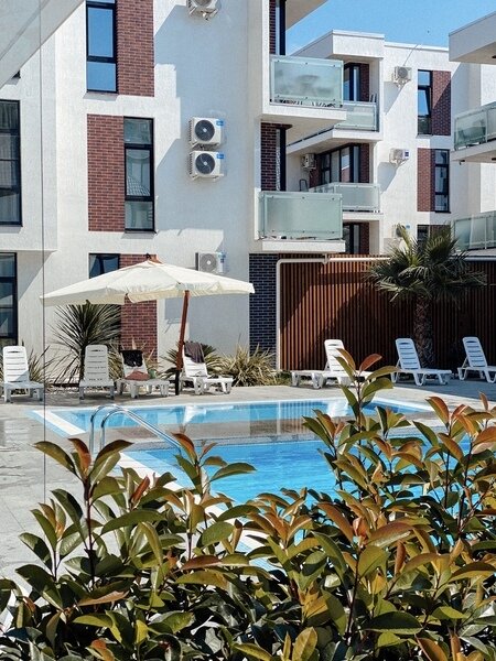 Все номера оборудованы ванными комнатами и wi-fi, своей кухней и кондиционером. Апартаменты полностью укомплектованы для комфортного пребывания. Изюминкой апартаментов является круглогодичный подогреваемый бассейн.
