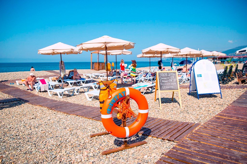 Тип пляжа: галечный, городской, оборудованныйИнфраструктура: лежаки, зонтики, шезлонгиРасположение: в пешей доступностиВ 100 метрах находится прекрасно оборудованный пляж Фрегат-Бич, где предлагается множество развлечений для взрослых и детей: прокат скутеров и катамаранов, катание на «банане», дайвинг и полеты на парашюте. На побережье есть летние кафе, раздевалки и душевые, лежаки и навесы.
