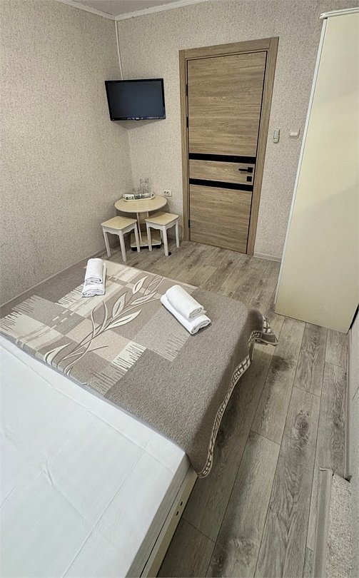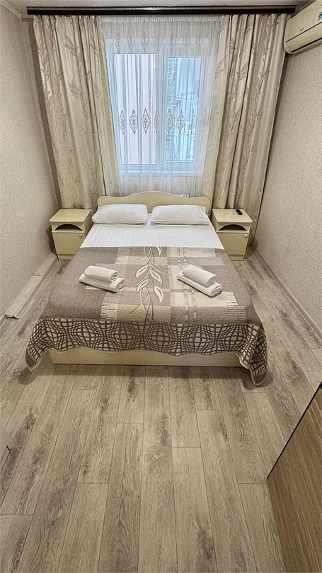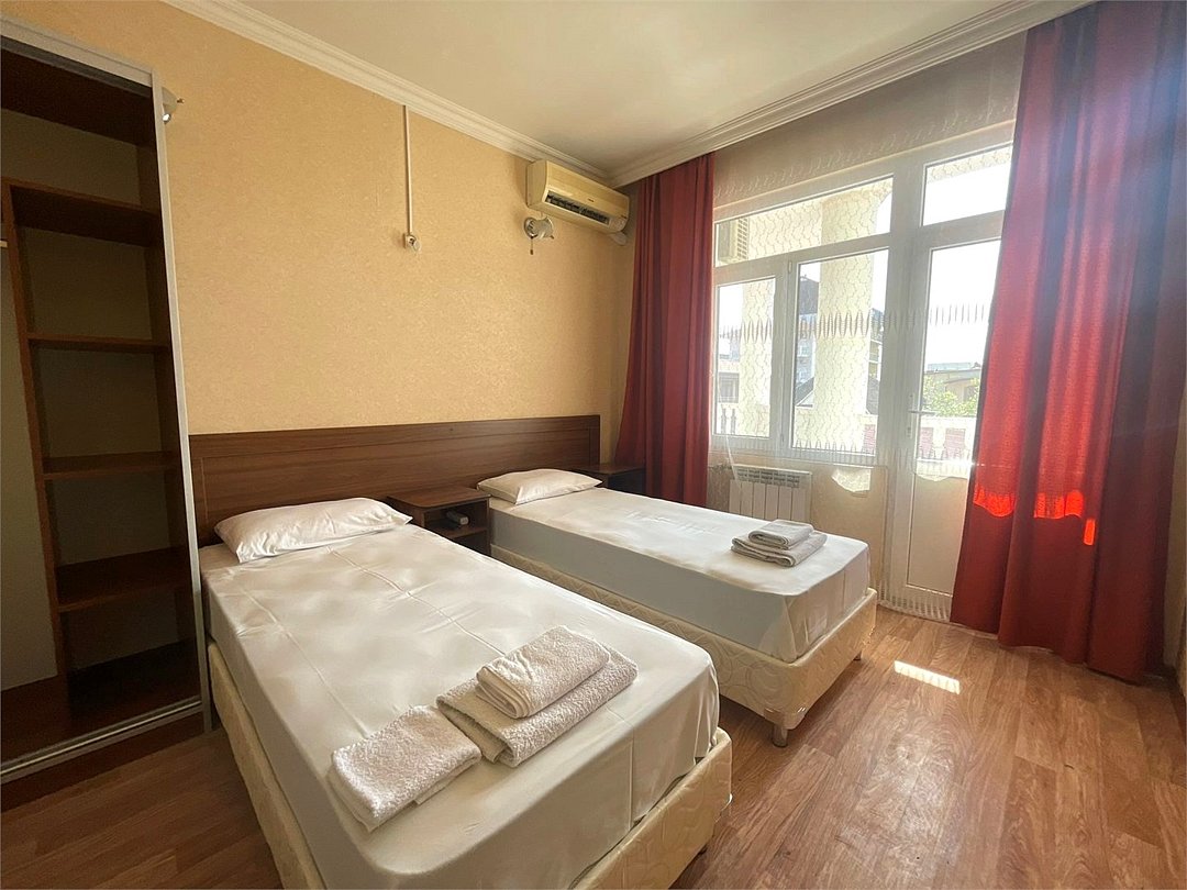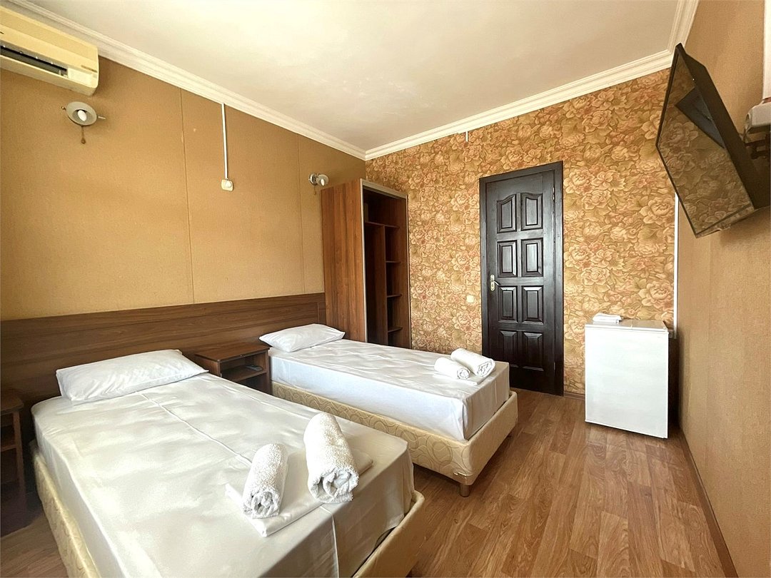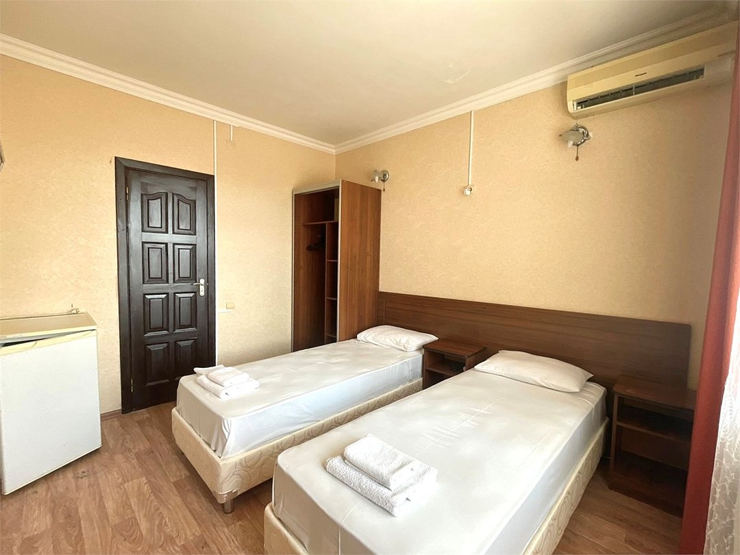 Уютные номера с двуспальной и односпальными кроватями. В комнате вся мебель, плоский тв, кондиционер. Холодильник на общей кухне. Общая ванная комната на этаже (на 2 номера). Кухня общая.Услуги и удобства