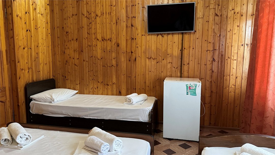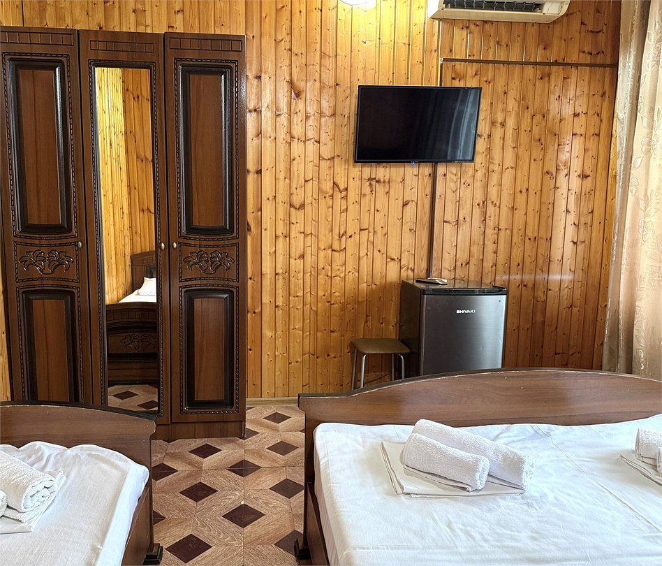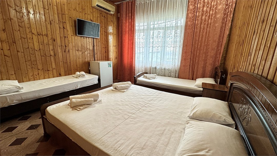 Просторные 2х комнатные номера. Очень комфортно как большой семьи, так и компании друзей. В комнатах вся мебель, Техника – тв, кондиционер, холодильник. Сан узел в комнате.Услуги и удобства