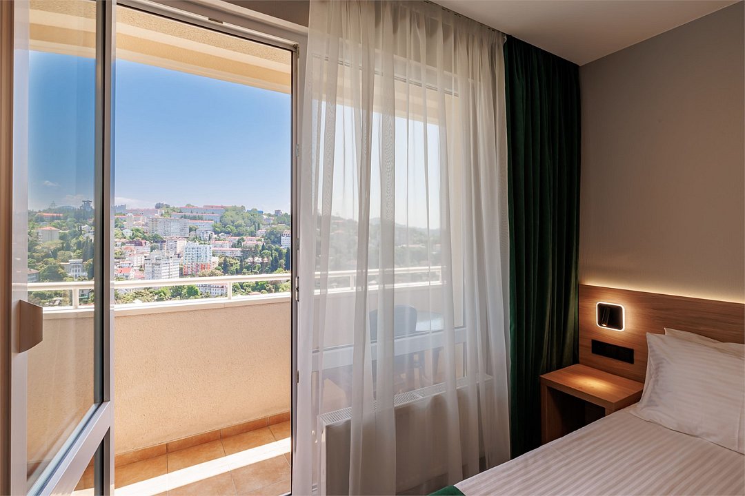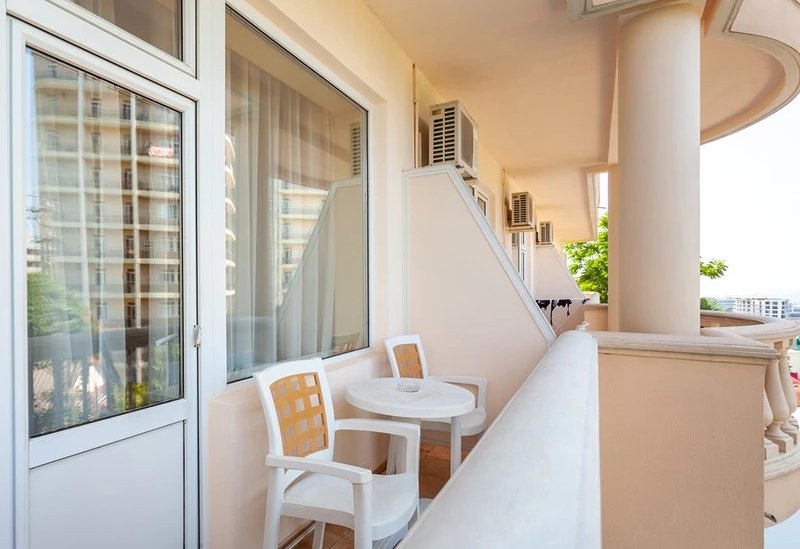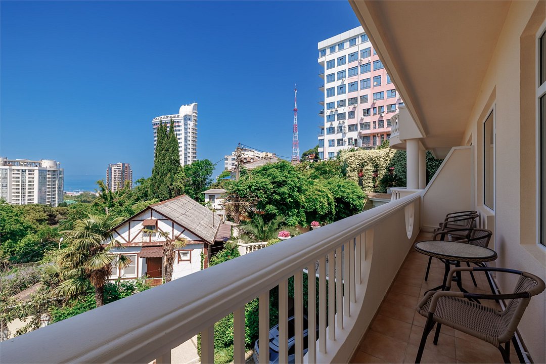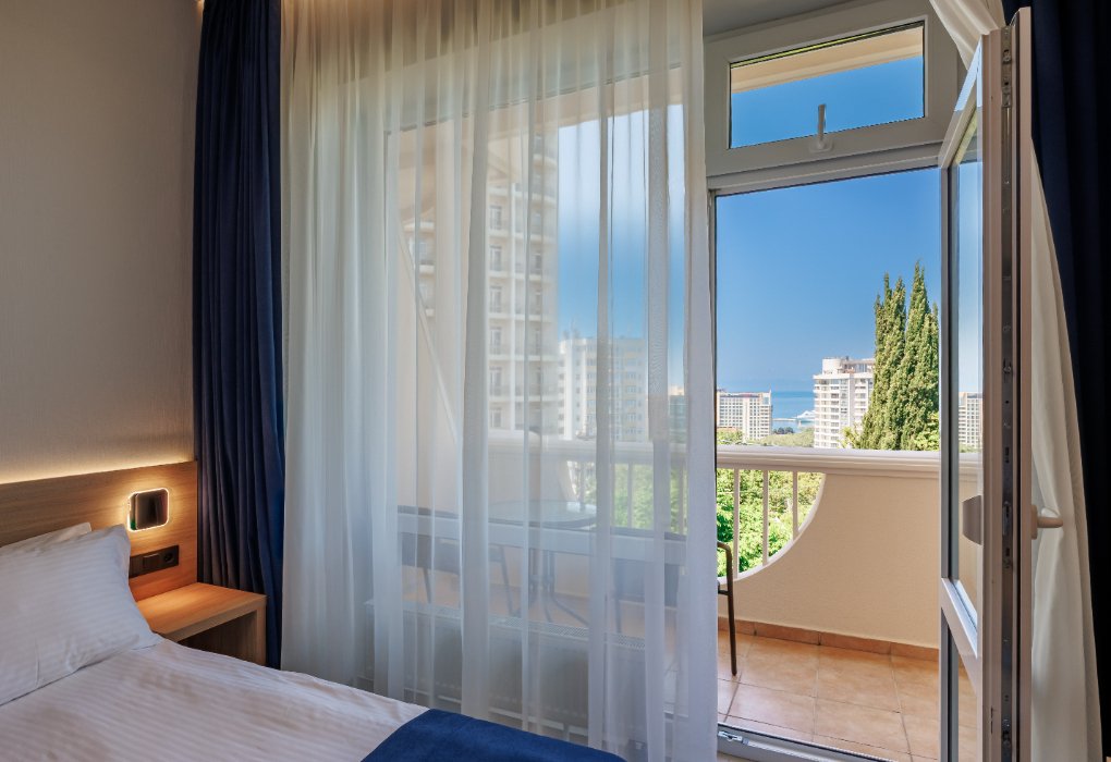 телевизор, Wi-Fi, телефон, кондиционер, фен, будильник, ванная комната, банные полотенца, пляжные полотенца, тапочки, гигиенические средства, балкон, стулья, шкаф для одежды, вешалки, зеркало, отопление, душ, вид на море, вид на город, кулер на этаже, туалетный столик, мини-холодильник, вид на горы, уборка номера, без питомцевВ номере