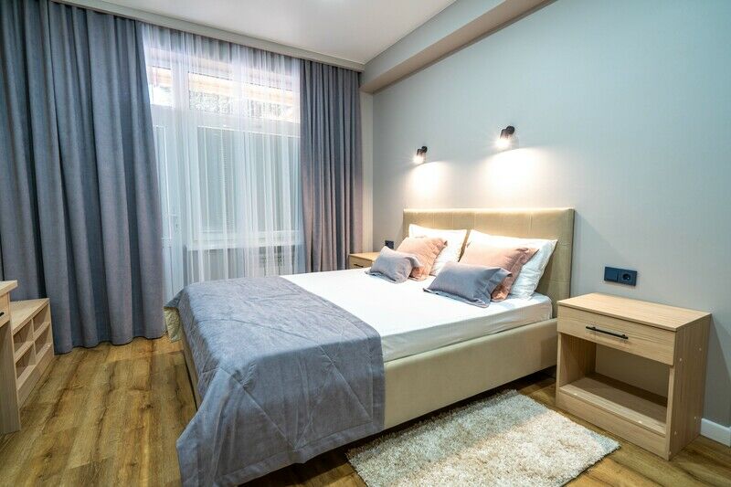 два телевизора, Wi-Fi, телефон, холодильник, кондиционер, фен, будильник, плита для приготовления пищи, микроволновая печь, утюг, ванная комната, ванна, банные полотенца, пляжные полотенца, тапочки, гигиенические средства, балкон с красивым видом, две двуспальные кровати, гладильная доска, диван, кресла, тумбы, стулья, шкаф для одежды, вешалки, журнальный столик, обеденный стол, зеркало, пуфики, ковер, две комнаты, кухня, письменные принадлежности, набор посуды, стиральная машина, чайник, унитаз, мягкая мебель, питьевая вода, обеденная зона, гостиная зона, ковровое покрытие, отопление, вид на море, три комнаты, кулер на этаже, кресло, две спальни, высокие потолки, кухонная посуда, стаканы, кухонная утварь, столовые приборы, туалетный столик, стул, туалетный столик, сушилка для белья, диван-кровать, раскладной диван, раскладное кресло, шкаф-купе, без питомцевВ аппартаментах