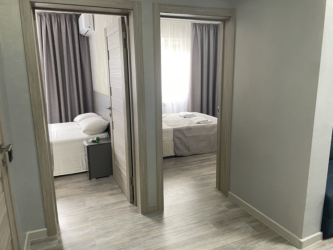 3-х комнатный Семейный люкс лучшее решение для комфортного проживания компании или семьи в нашем гостевом доме. Мы предоставляем два номера данной категории, номер на 1м этаже и номер на 2м этаже с отдельным входом в одну из спален и дополнительным душем и туалетом. - Мы предлагаем вам атмосферу уюта и гостеприимства, а также все условия для приятного отдыха. - Наш люкс отличается новым евроремонтом, который гарантирует вам максимальный комфорт и удобство. - Две отдельные спальни с удобными кроватями и просторная кухня-гостиная с диваном для ещё одного спального места. Кухня-гостиная станет идеальным местом для совместного отдыха и общения. - Наличие своей кухни позволит вам готовить любимые блюда, наслаждаясь ими в кругу друзей и близких. - Душевая комната подарит ощущение свежести после активного дня, а сплит-система поможет создать комфортный микроклимат в любое время года. - Также наш люкс оснащен wi-fi, что позволит вам всегда оставаться на связи, следить за новостями и делиться впечатлениями с друзьями. -Общая площадь люкса составляет 38 кв. М., что делает его идеальным вариантом для проживания большой семьи или компании друзей. -Наш люкс станет отличным выбором для семейного отпуска, романтических выходных или деловой поездки!В номере
