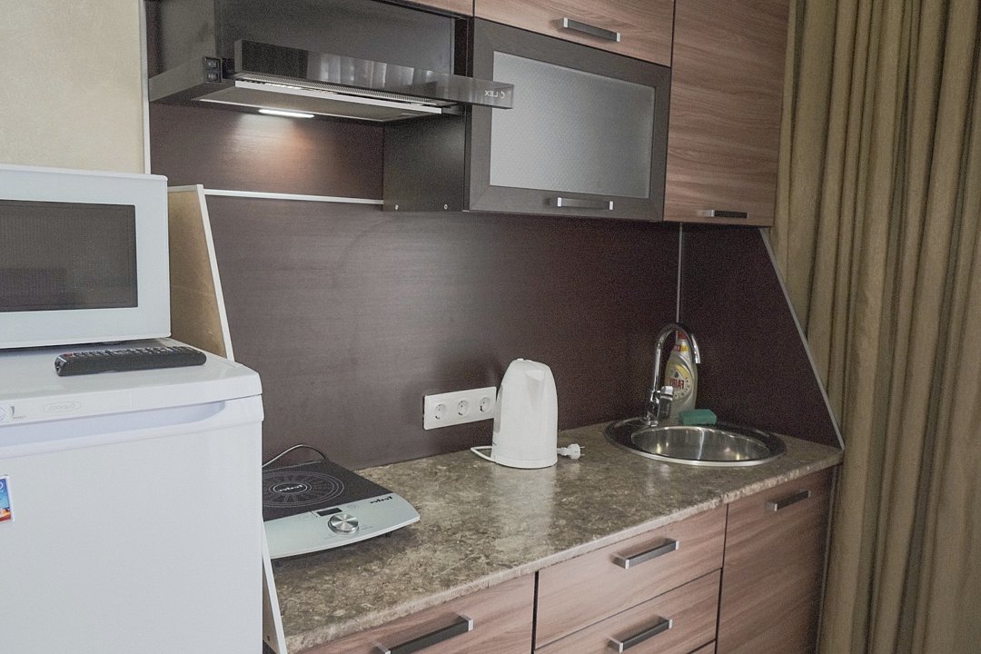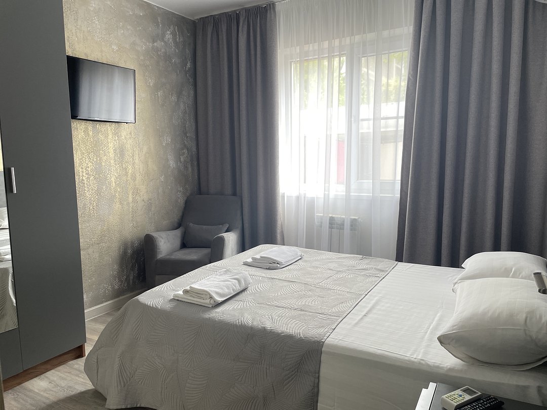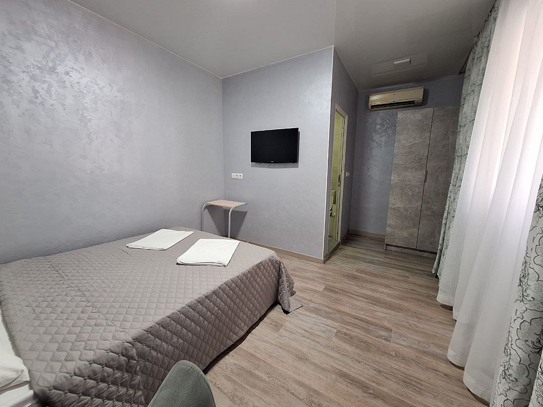 номер Стандарт - Свежий ремонт и стильный дизайн интерьера обеспечат вам уют и гармонию - Ваше пребывание будет еще более приятным благодаря наличию собственного холодильника, микроволновой печи и электрического чайника. - Душевая комната, где вы найдете все необходимые принадлежности для комфортного и приятного принятия душа. - Кроме того, номер Стандарт оснащен сплит-системой, которая позволит вам наслаждаться прохладой в жаркие дни и теплом в холодные вечера. - Вы не останетесь без доступа к интернету, так как Wi-Fi позволит вам оставаться на связи и работать удаленно, если это необходимо. - Вместимость до 2х человек делает наш номер идеальным выбором для семейного отдыха или деловой поездки. Не упустите возможность отдохнуть в нашем комфортном и стильном Стандартном номере и насладиться качественным сервисом!В номере
