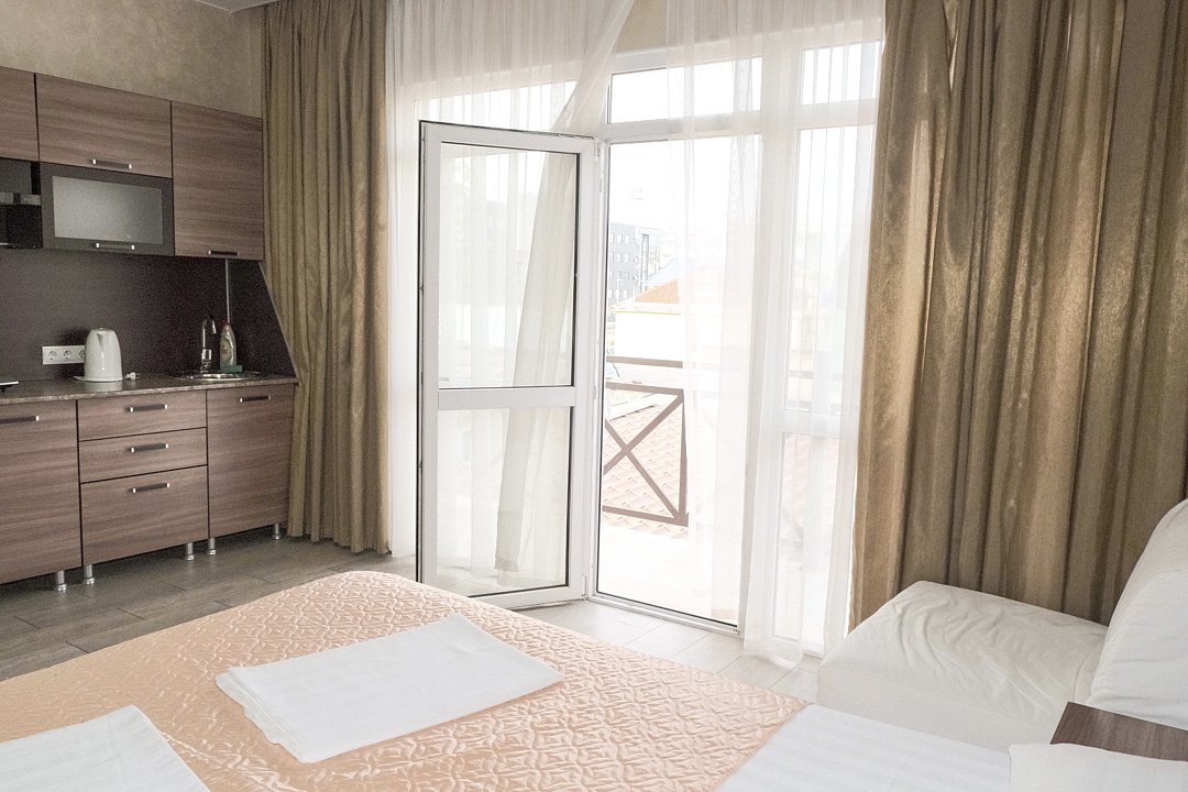 Представляем Вам Апартамент-студию! Идеальный выбор для комфортного проживания во время путешествия или деловой поездки! - Расположенный на 3 этаже нашего гостевого дома, этот просторный номер выполнен с использованием только качественных материалов. - Апартамент-студия предлагает своим гостям все необходимые удобства для незабываемого отдыха или продуктивной работы. - Солнечная сторона дарит обилие естественного света и тепла, создавая уютную атмосферу. - Собственная кухня позволит Вам готовить любимые блюда и наслаждаться домашней едой, не выходя из номера. - Душевая комната оборудована всеми необходимыми принадлежностями для комфортного принятия душа. - Сплит-система обеспечивает комфортную температуру в любое время года. - Wi-Fi позволит всегда оставаться на связи и работать удаленно. Во дворе имеется бесплатная автомобильная парковка (на две машины).В номере