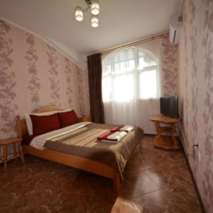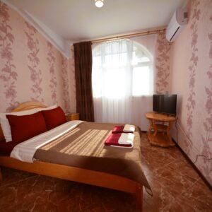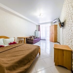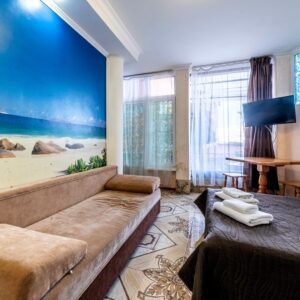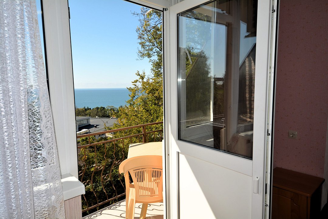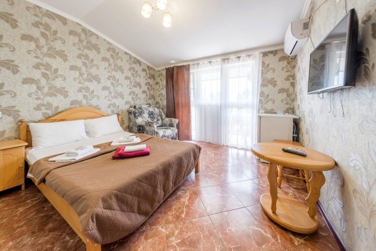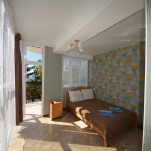 Однокомнатный номер с балконом и двуспальной кроватью. С балкона открывается красивый вид на море.В номере