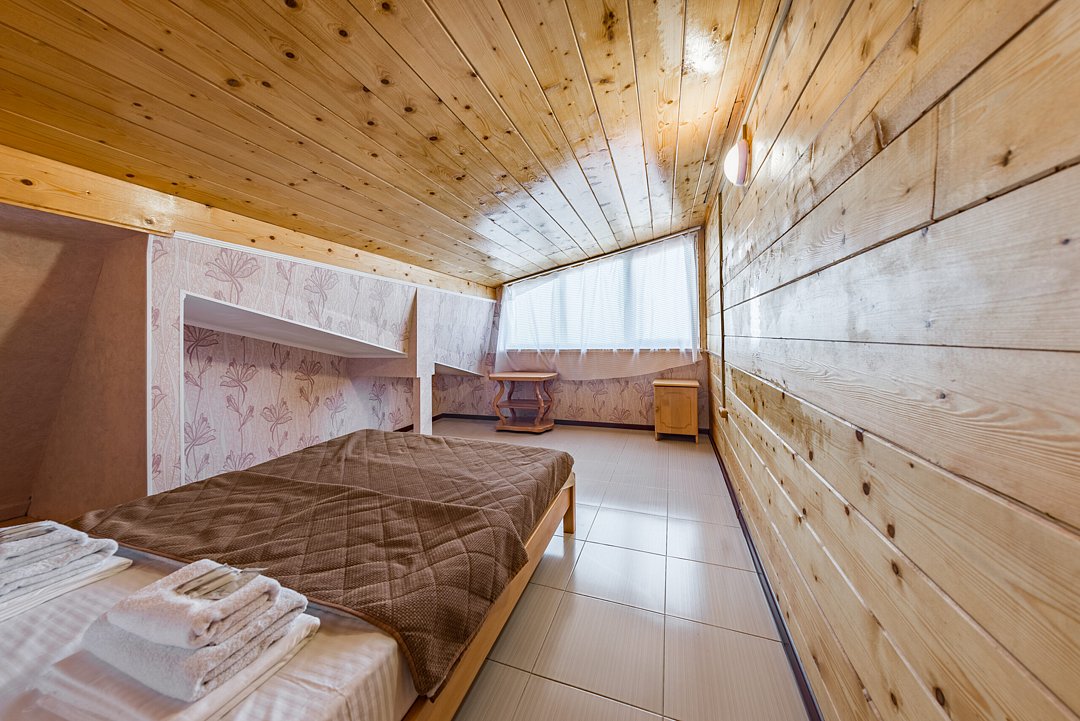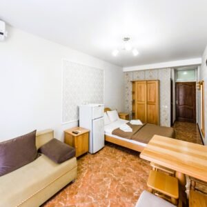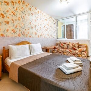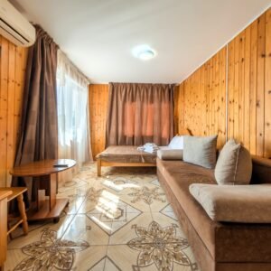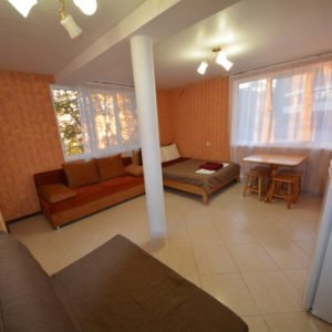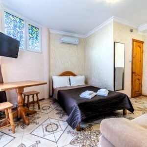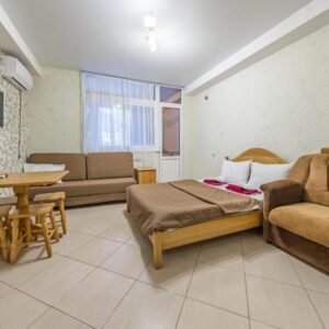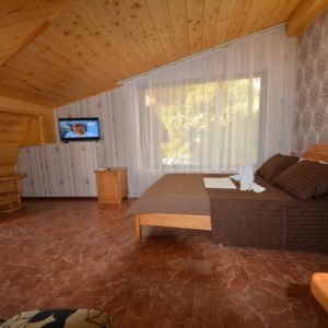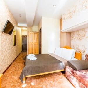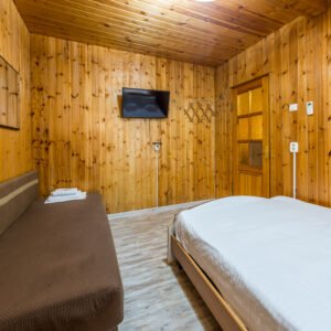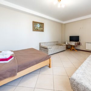 Семейный номер с двуспальной кроватью и раскладывающимся диваном. Есть также еще доп место для ребенка. Первый этаж, отдельный вход.В номере