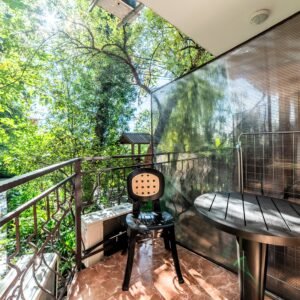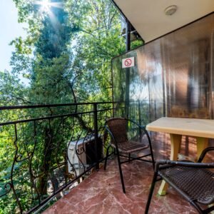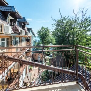 Двухместный номер с двуспальной кроватью и дополнительным местом для ребенка. Балкон с видом на море, горы или на сад.В номере
