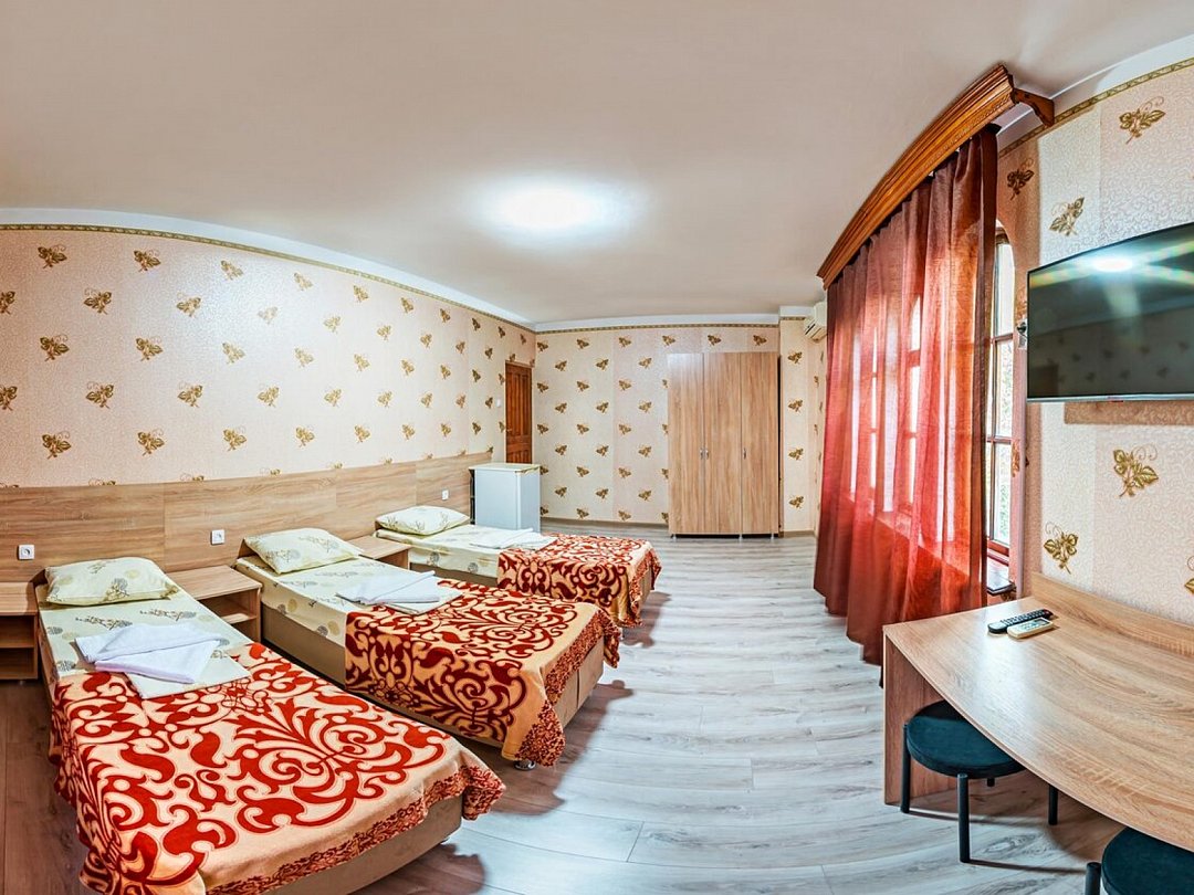Номер в нашем семейном гостевом доме предназначен для проживания 2-3 человек. В комнате есть одна двухспальная кровать и диван-кровать или 3 раздельные кровати. Этот вариант идеально подходит для 2, 3 гостей. В номере также имеется все необходимое для комфортного отдыха и приятного времяпрепровождения. На каждом этаже кулер с горячей и холодной водой.В номере