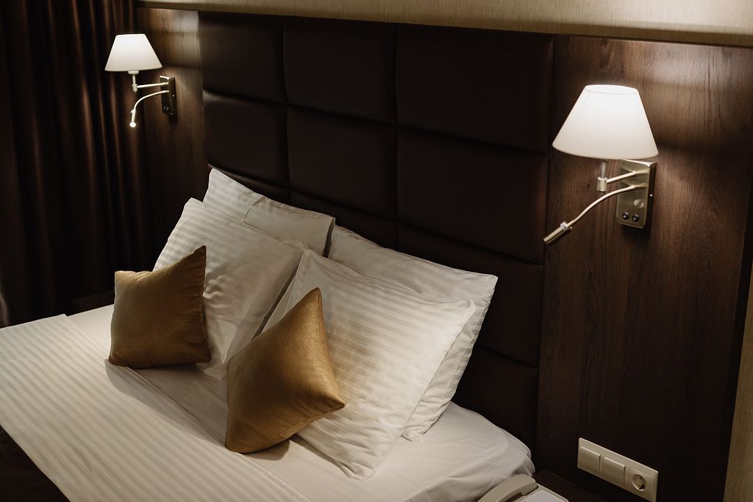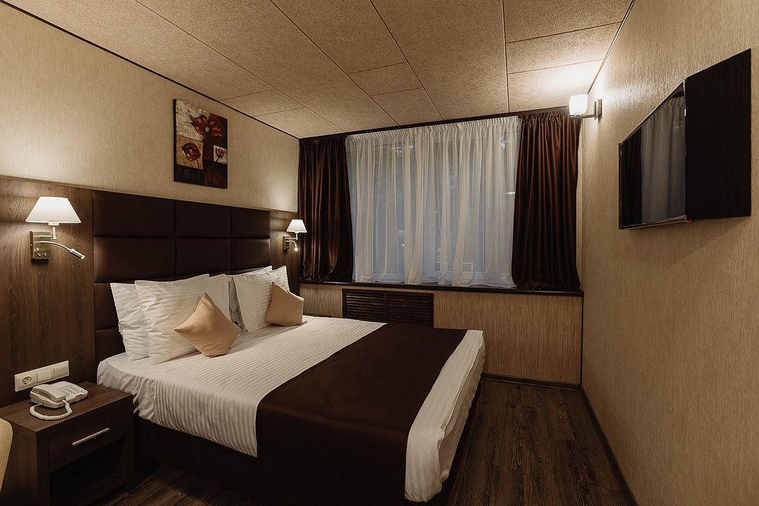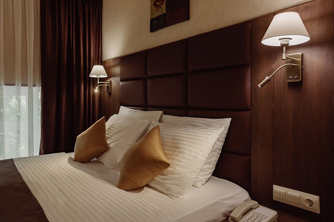 телевизор, Wi-Fi, интернет, телефон, холодильник, кондиционер, светильник, настольные лампы, фен, электронные замки, душевая кабина, ванна или душевая кабина, санузел, халаты, банные полотенца, косметические средства, кровать «King size», стулья, письменный стол, звуконепроницаемые стены и окна, мини-бар, чайный набор, обслуживание номеров, информационная карта, меню, сейф, минеральная вода, чайник, унитаз, раковина, питьевая вода, отопление, душ, вид на сад, вид на город, кулер на этаже, вид во двор, ламинат, стаканы, стул, стол, тумба, туалетные средства, туалет, вид на парк, цифровое тв, внутренний телефон, телевизор с плоским экраном, мини-холодильник, москитная сетка, гостиничная парфюмерияВ гостиничном номере