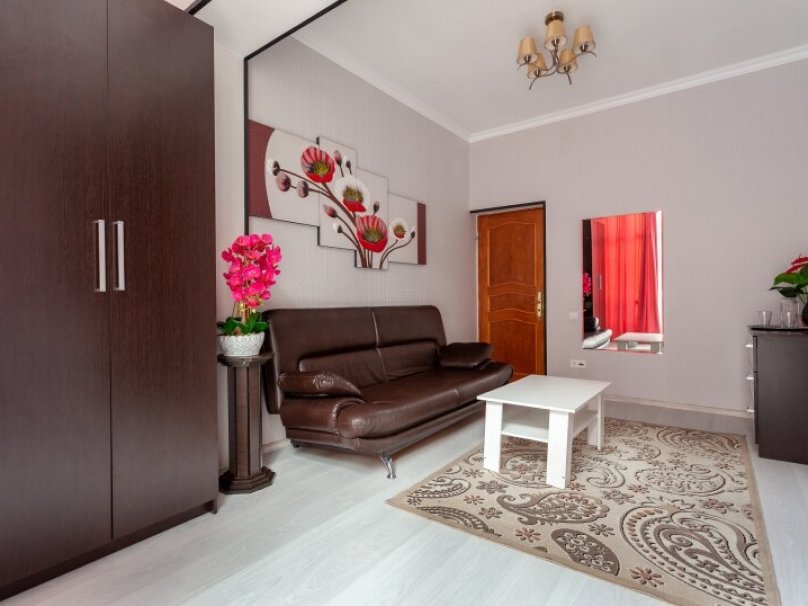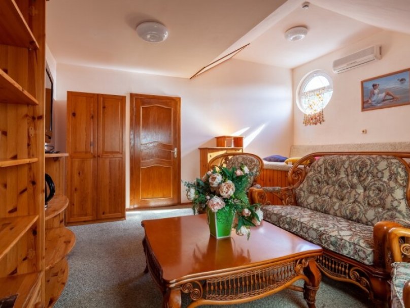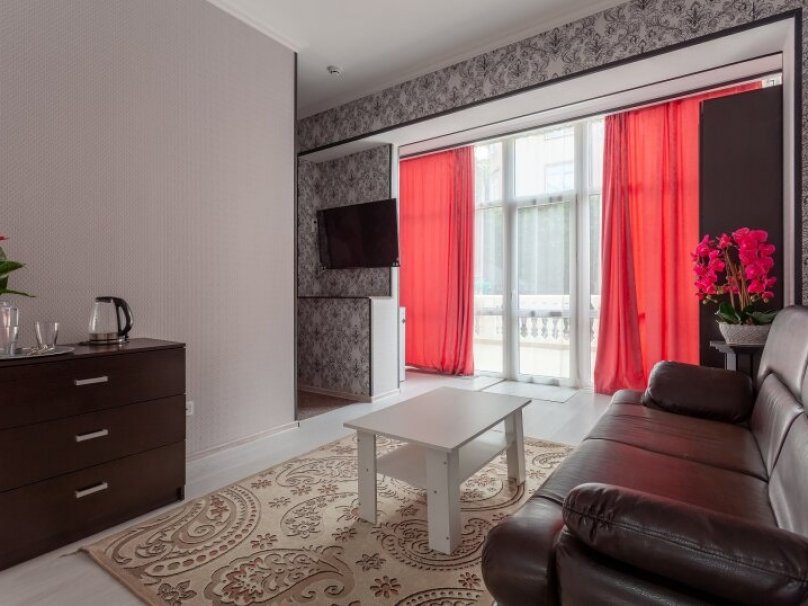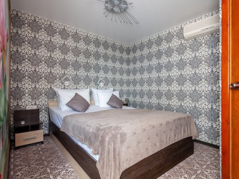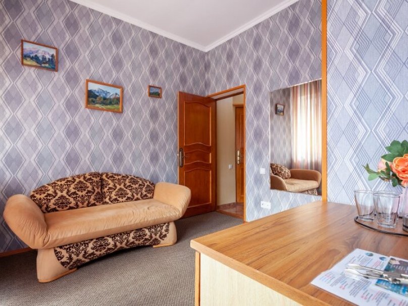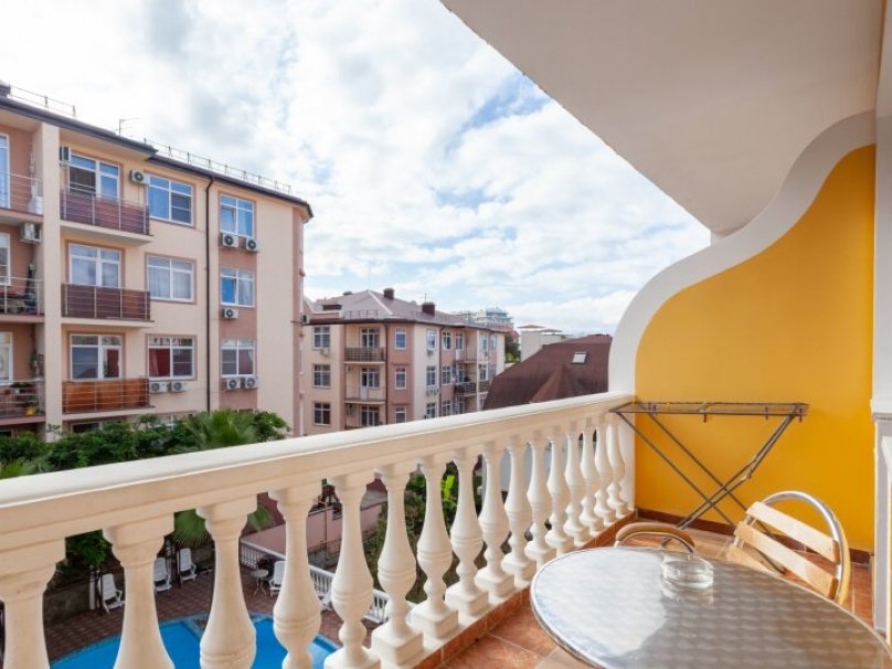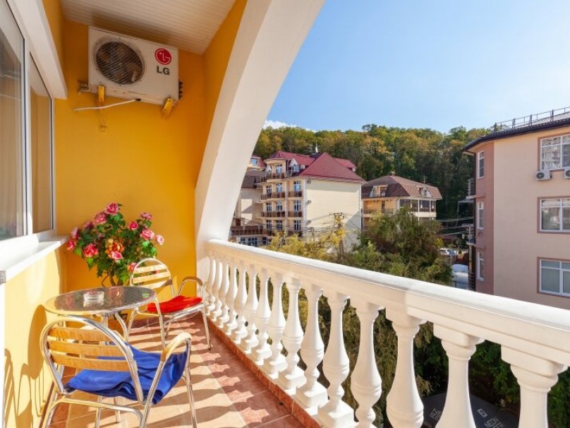 Двухкомнатный двухместный номер прихожей. Рассчитан на 2-х человек (с двуспальной кроватью) Санузел оборудован ванной, биде. На каждого гостя предусмотрен комплект из 3х полотенец разного вида . В номере имеется телевизор (10 центральных каналов), холодильник (по желанию заполняемый мини-баром), кондиционер, телефон ( внутренняя, городская связи), торшер.С номера есть доступ на открытый балкон(терраса), на балконе имеется каркасная мебель, лежаки для загара (стол, стулья). Номер оборудован электронной системой контроля доступа «Salto»исание номера данной категории ...В номере