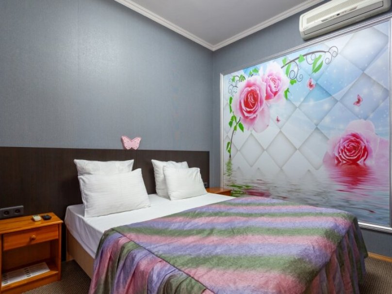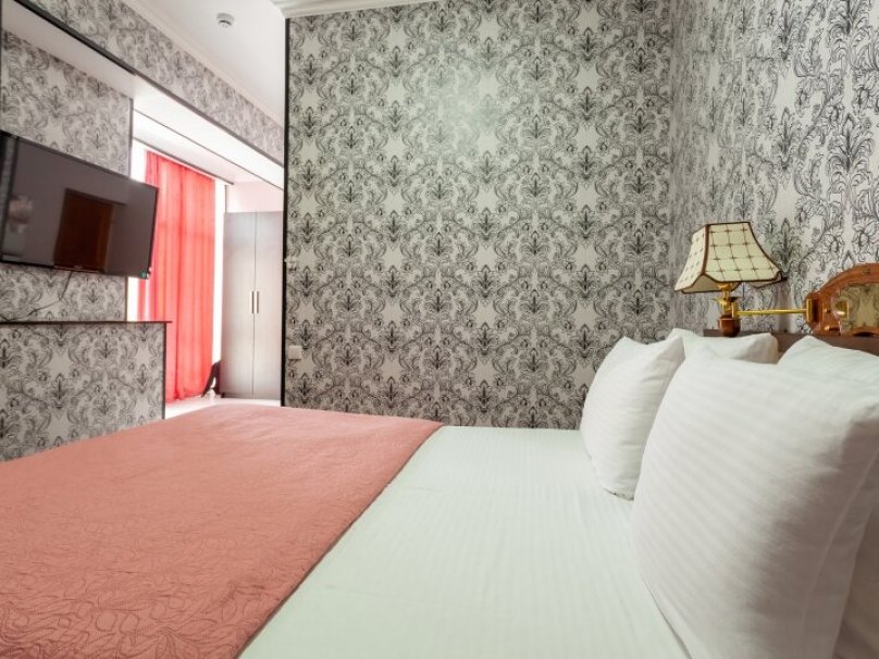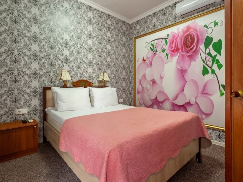 Общая площадь номера 20м2. Однокомнатный двухместный номер с балконом, прихожей. Рассчитан на 2-х человек (с двуспальной (французской) или двумя раздельными кроватями), некоторые номера обарудованы дополнительными местами - раскладной диван (выдается третий комплект белья на дополнительное место.) Санузел оборудован ванной, биде. На каждого гостя предусмотрен комплект из 3х полотенец разного вида . В номере имеется телевизор (10 центральных каналов), холодильник (по желанию заполняемый мини-баром), кондиционер, телефон ( внутренняя, городская связи), торшер. В номере есть балкон, на балконе имеется каркасная мебель (стол, стулья). Номер оборудован электронной системой контроля доступа «Salto».В номере