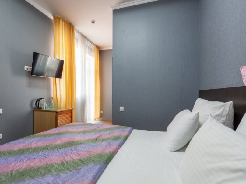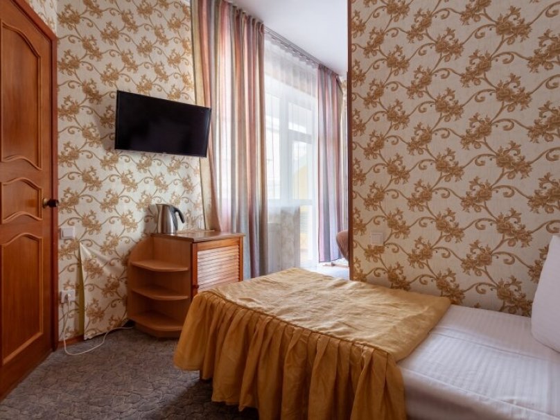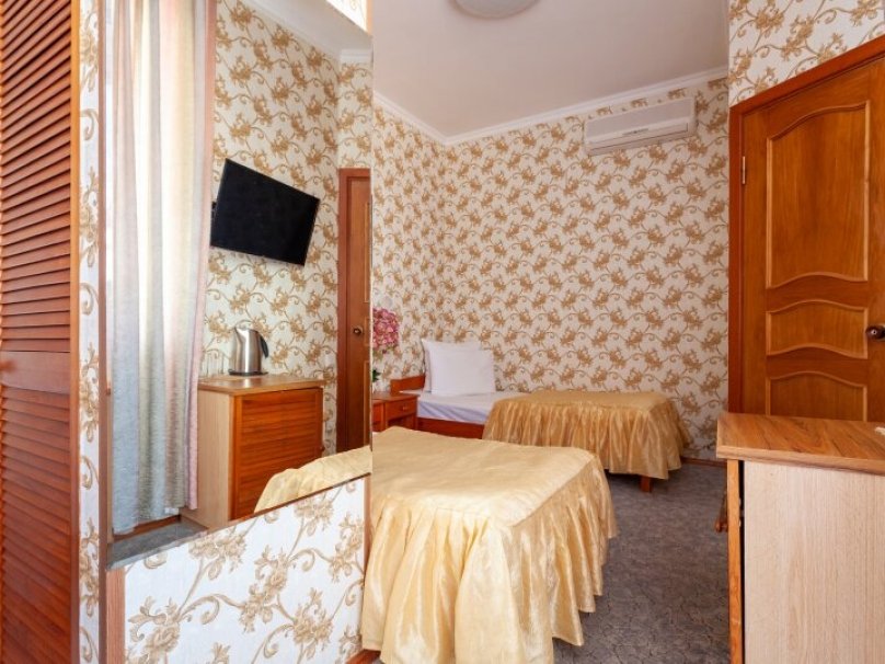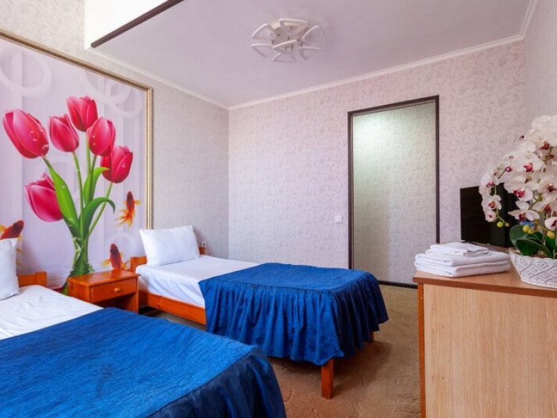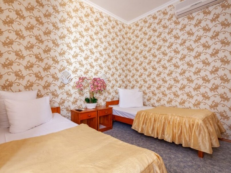 Общая площадь номера 16 м2.Однокомнатный двухместный номер без балкона, рассчитан на 2-х человек, с двумя раздельными кроватями, возможно дополнительное место. Санузел оборудован ванной, биде. На каждого гостя предусмотрен комплект из 3х полотенец разного вида. В номере имеется телевизор (10 центральных каналов), холодильник (по желанию заполняемый мини-баром), кондиционер, отопительные радиаторы, телефон (внутренняя, городская связи), торшер. Номер оборудован электронной системой контроля доступа "Salto".В номере
