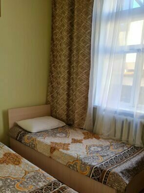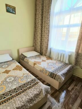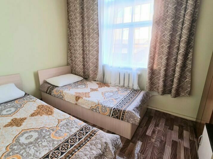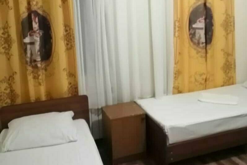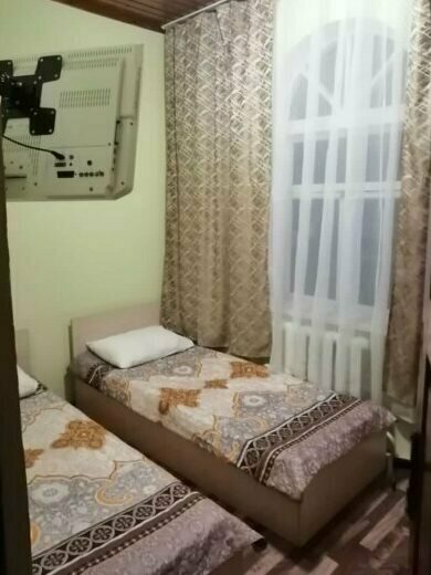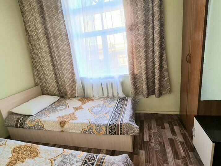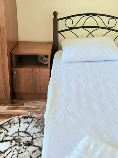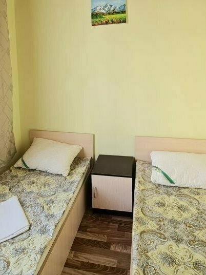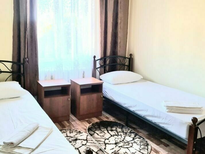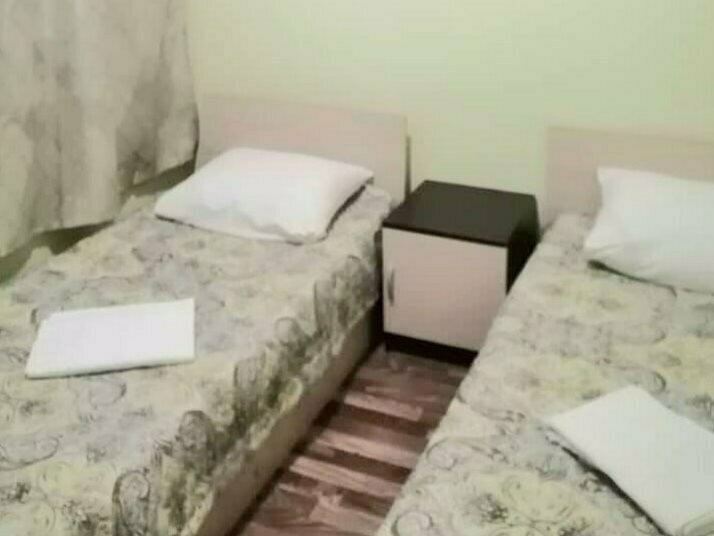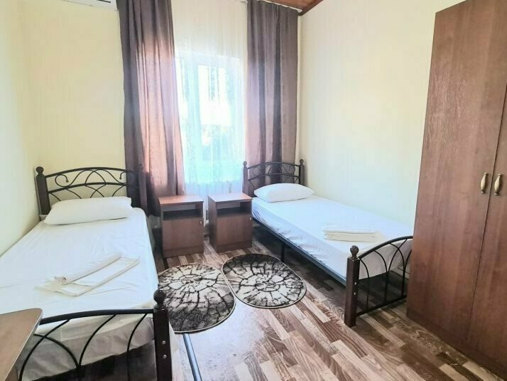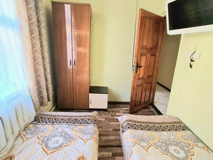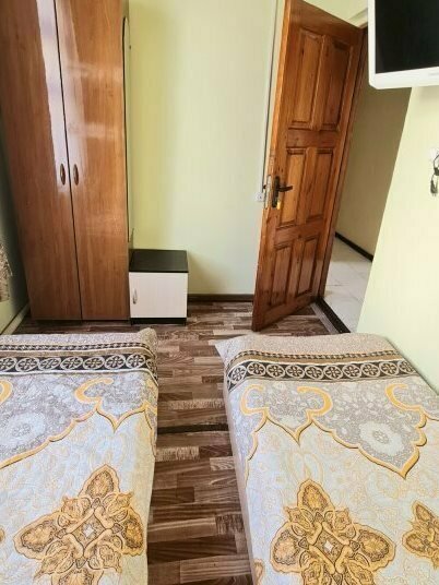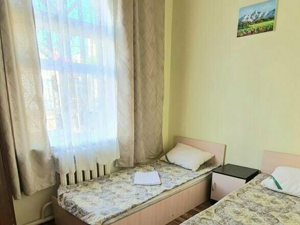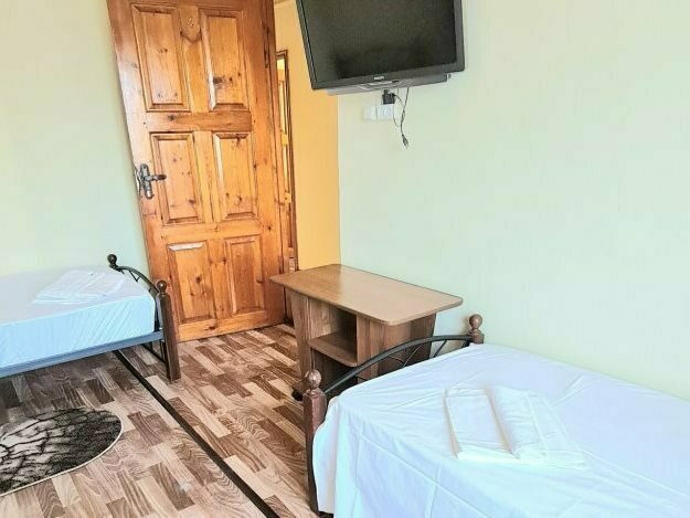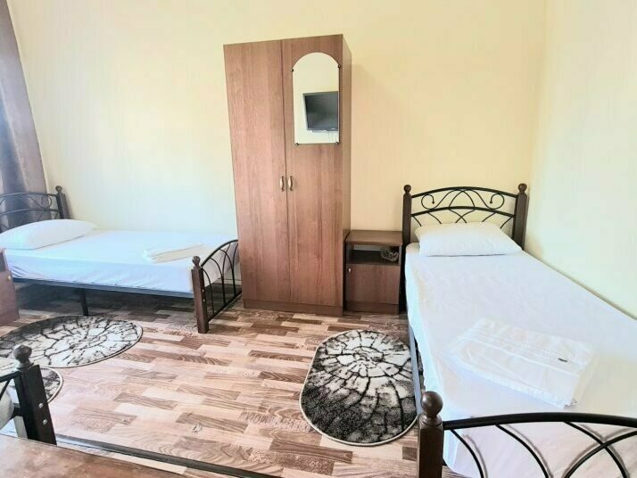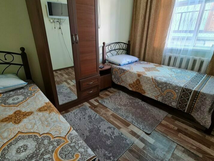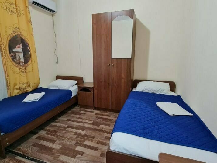 В номере: 2 односпальные кровати, телевизор, кондиционер, вешалка , шкаф, рабочий стол. Общая ванная комната.