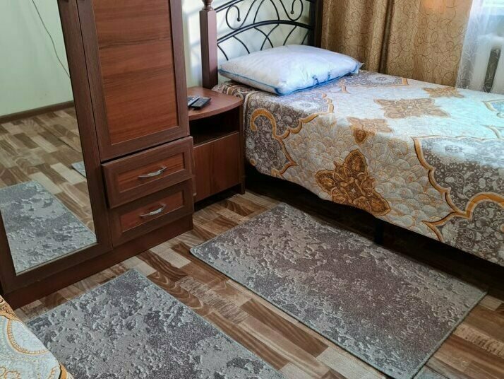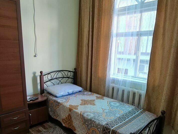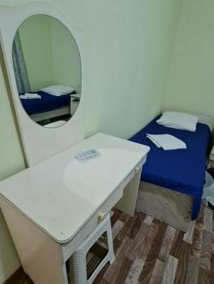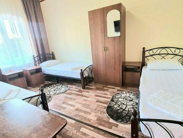 В номере: 3 односпальные кровати, телевизор, кондиционер, вешалка, шкаф, рабочий стол. Общая ванная комната.