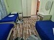 3 односпальные кровати, телевизор, кондиционер, шкаф, удобства общие на этаже.