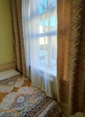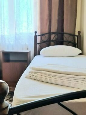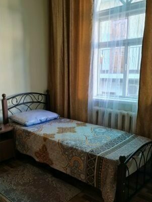 Имеет спальню с приятным интерьером. В номере: 3 односпальные кровати, телевизор, кондиционер, вешалка, шкаф, рабочий стол. Общая ванная комната.