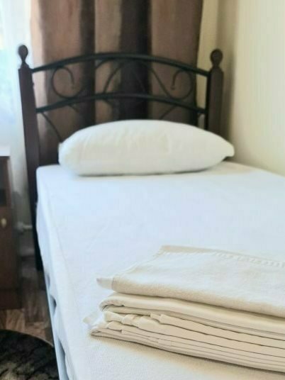 2 односпальные кровати, телевизор, вентилятор, шкаф, удобства общие на этаже.