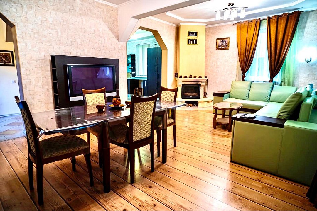 В сердце коттеджа имеется настоящий камин на дровах со стеклянной дверцей, который согреет гостей в зимние вечера и придаст особый уют. Ну а главной особенностью дома будет открытая терраса со столами и стульями для большой компании с шикарным видом на горы и мангальной зоной. Для любителей домашнего досуга коттедж оснащен жаркой сауной и русским бильярдом, большим телевизором с интернетом и караоке.