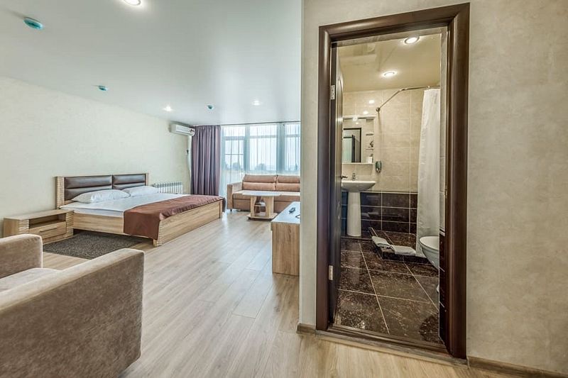 Состоит из двух стандартных номеров, соединенных между собой межкомнатной дверью. Наличие изолированных комнат и двух санузлов обеспечивает максимальный комфорт при размещении родителей с детьми или больших компаний.