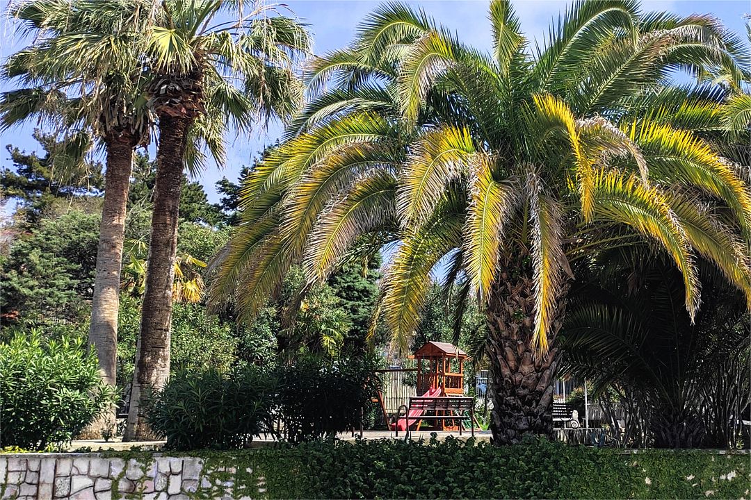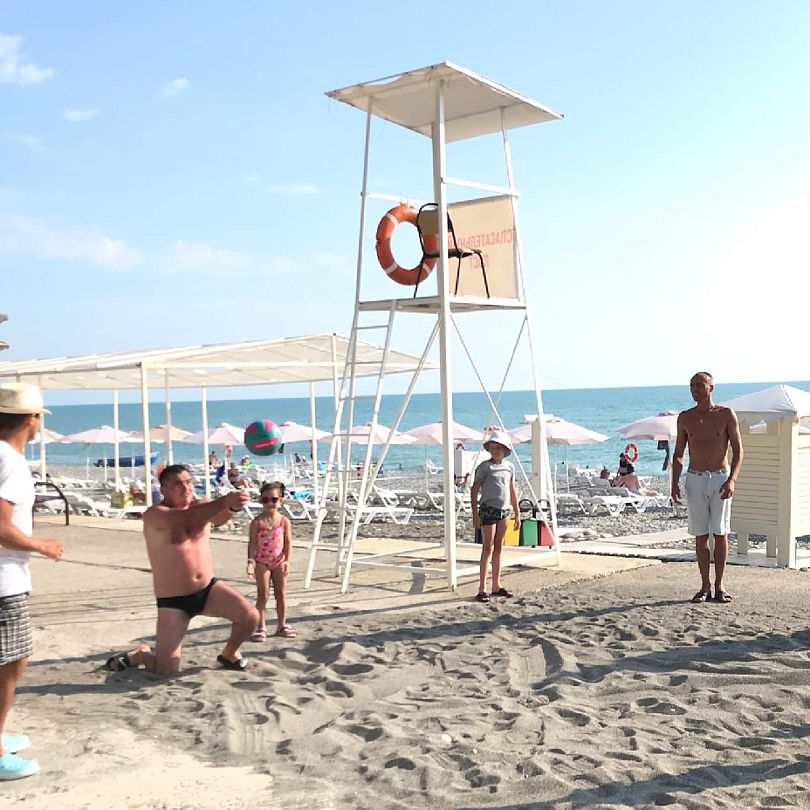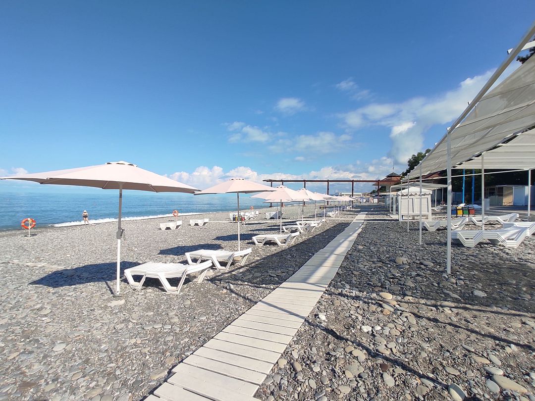 Собственный пляж отеля имеет смешанный грунт (песок и галька). Протяженность 88 метров. Для комфортного отдыха гостей предусмотрены раздевалки, теневые зонты и лежаки. Пляж пансионата оснащен всеми необходимыми спасательными средствами.