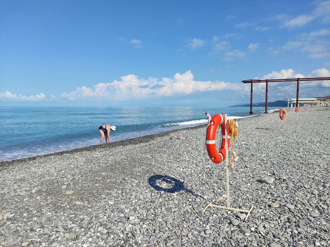 Рядом с пансионатом находится галечный пляж. До него всего 300 метров. Он оборудован шезлонгами, зонтами, лежаками, кабинками и душевыми.